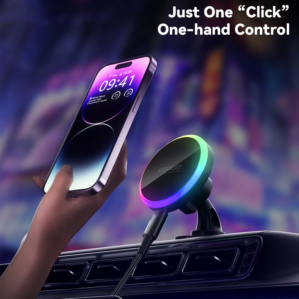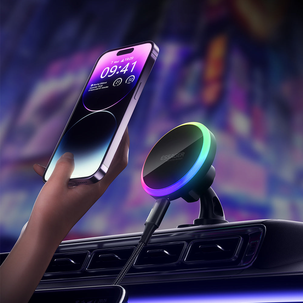 - ESSAGER ACPH004 Car Magnetic Wireless Charger Colorful Light Air Vent Dashboard Mount Phone Charging Bracket ESSAGER ACPH004 Car Magnetic Wireless Charger Colorful Light Air Vent Dashboard Mount Phone Charging Bracket
