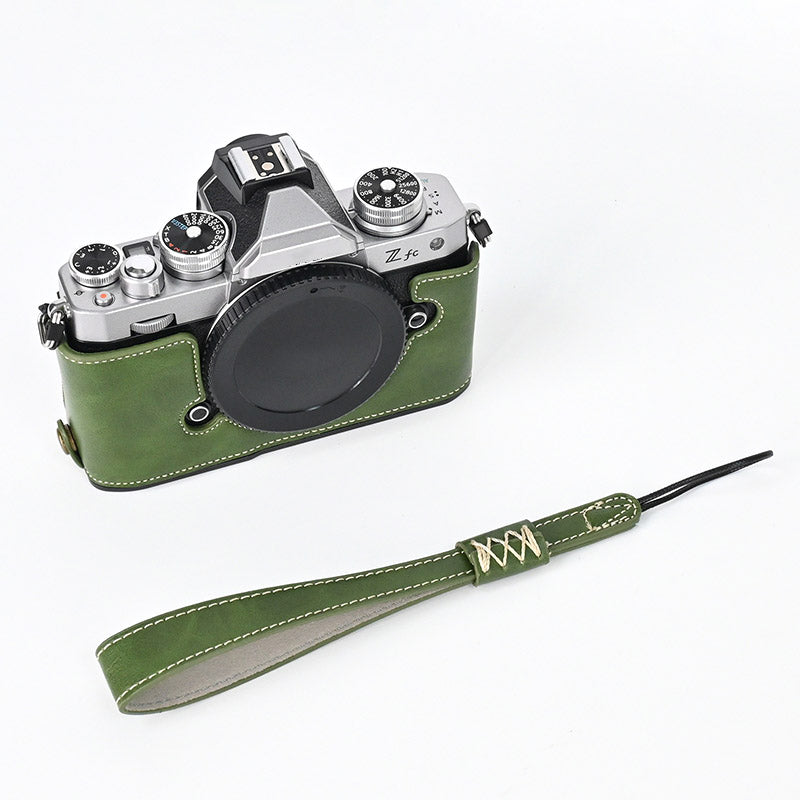 - For Nikon Z fc Camera Bag Bottom Case PU Leather Protective Half Body Cover with Battery Opening For Nikon Z fc Camera Bag Bottom Case PU Leather Protective Half Body Cover with Battery Opening