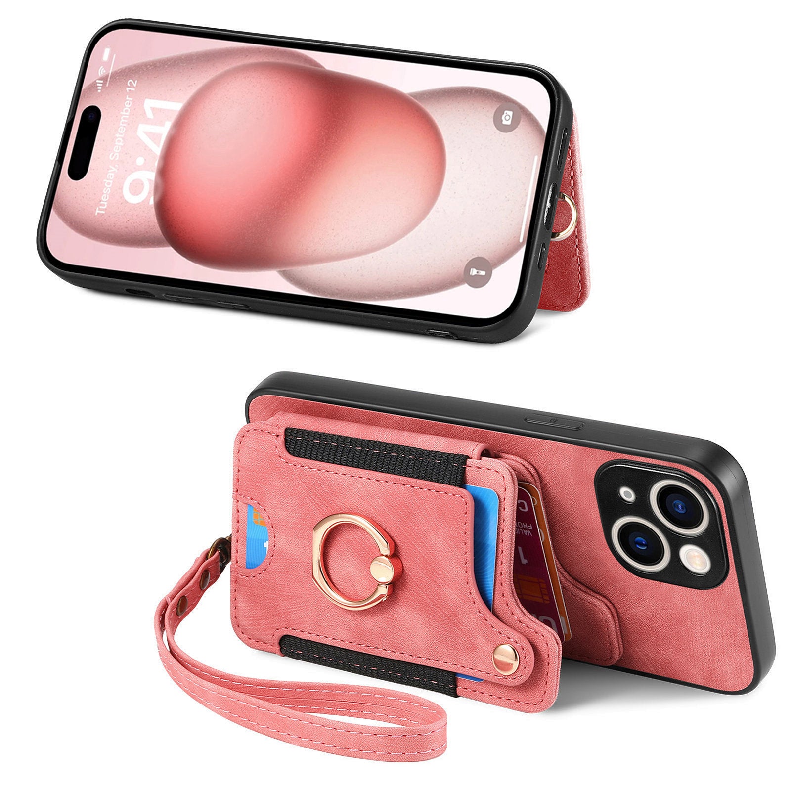 D4 For iPhone 15 Case Card Slots RFID Blocking Leather+TPU Phone Back Cover