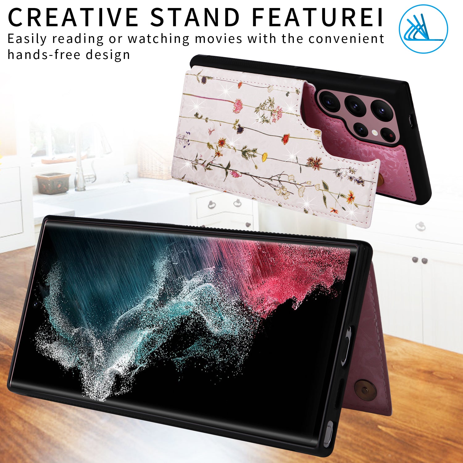 - For Samsung Galaxy S22 Ultra 5G Phone Case Kickstand Flower Leather Coated TPU Cover For Samsung Galaxy S22 Ultra 5G Phone Case Kickstand Flower Leather Coated TPU Cover