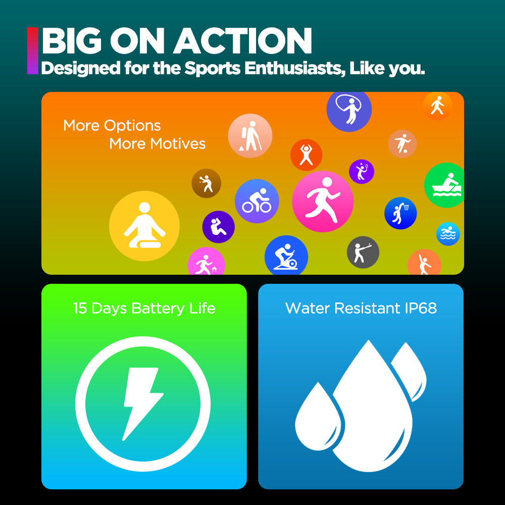 - 1.86" Large Color Display: Ready for a real eye-opener? Immerse yourself in the super-large and colorful HD display, and see all your incoming calls, messages, reminders, and health, and fitness data in awesome, expansive screen