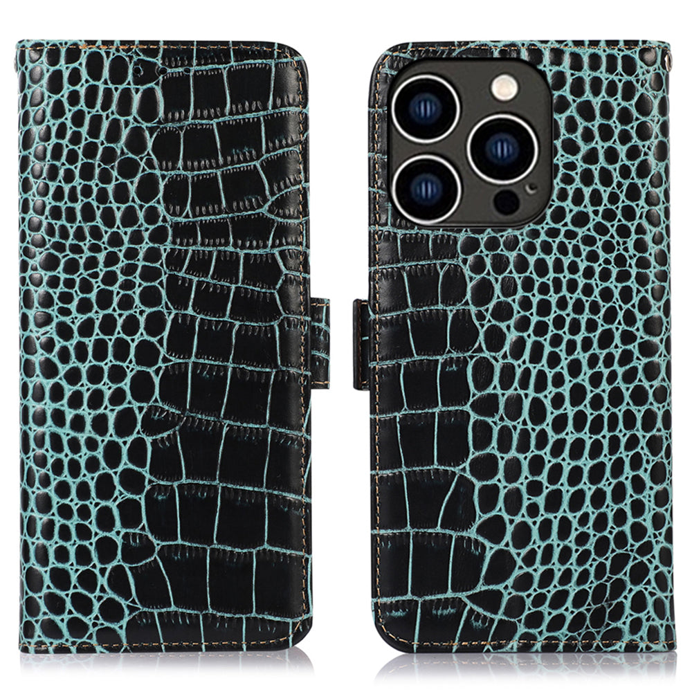 - Premium crocodile texture genuine cow leather and TPU material