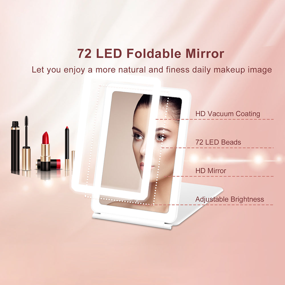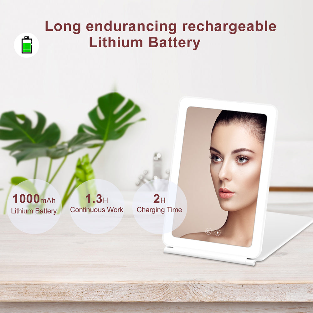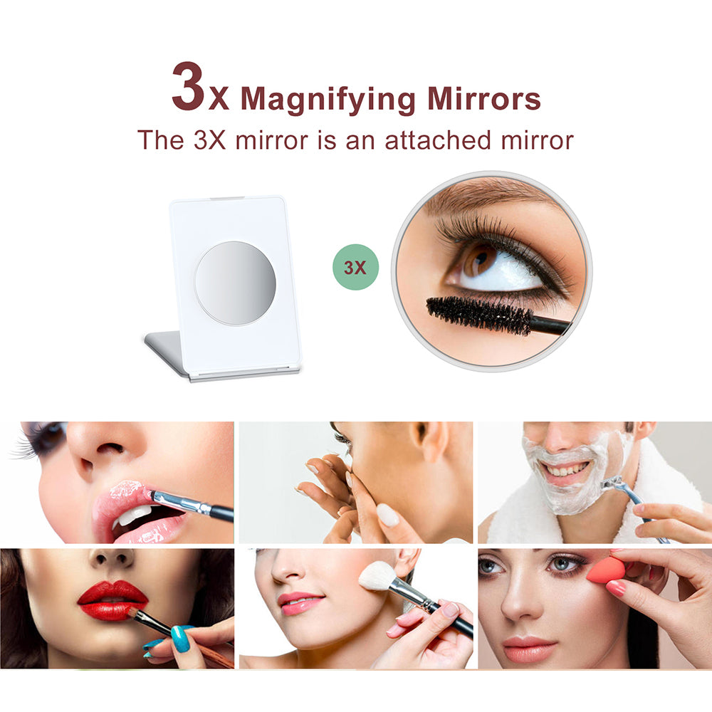 J17 Folding Portable LED Makeup Mirror with 3X Magnification for Travel and Desktop
