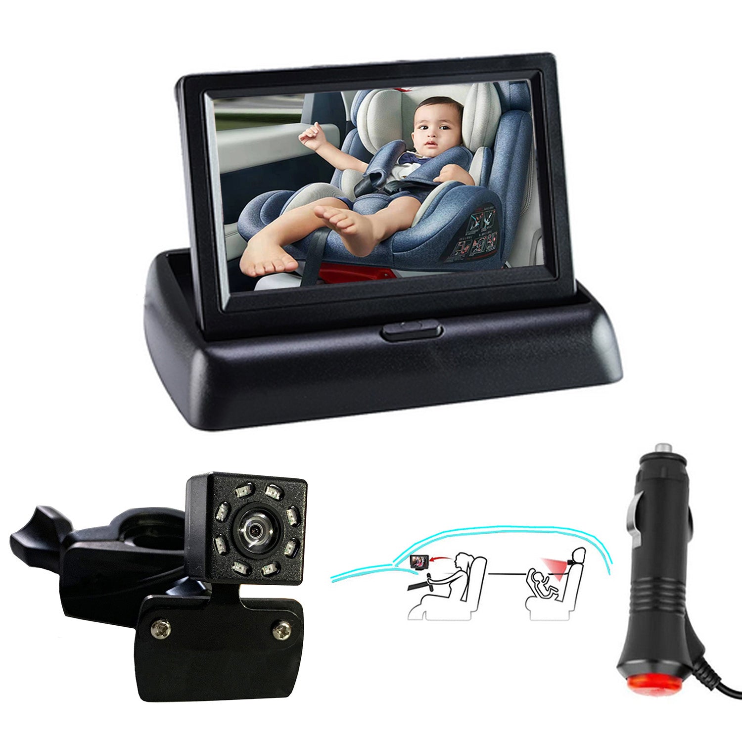 - The baby monitor camera allows you to observe the baby through the 5.0 inch large screen easily. Essential for safe driving