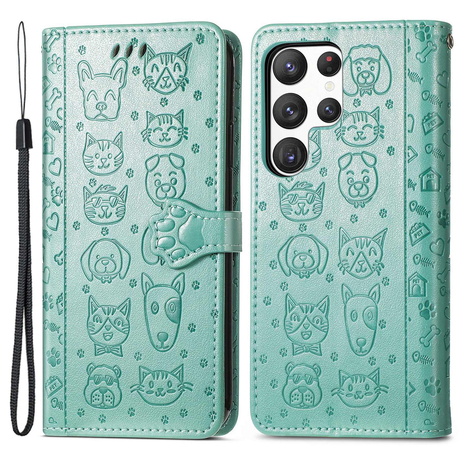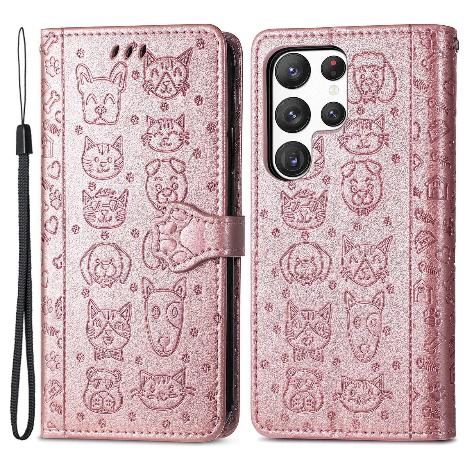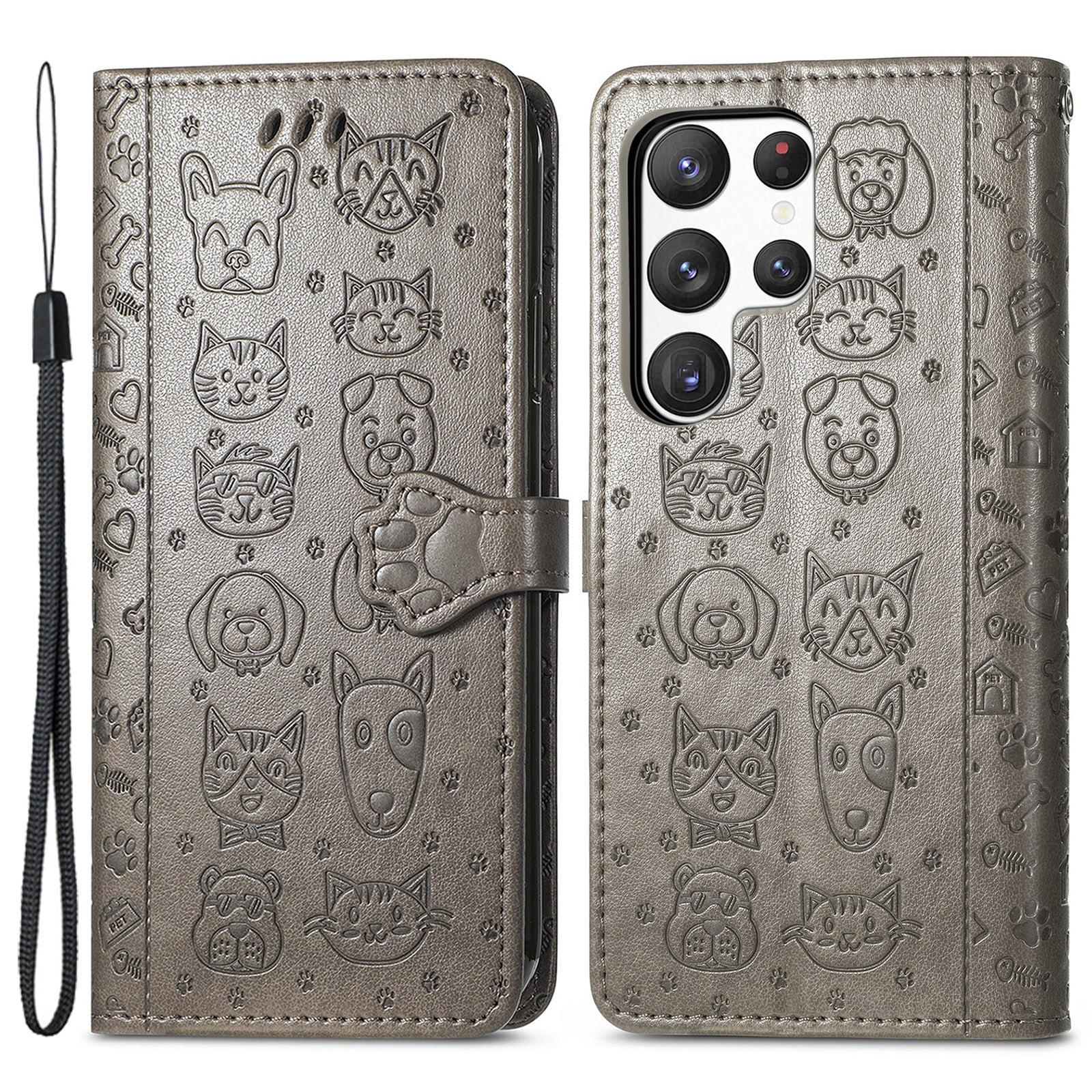 For Samsung Galaxy S23 Ultra Imprinted Cat Dog Pattern Phone Case PU Leather Wallet Stand Full Protection Cover