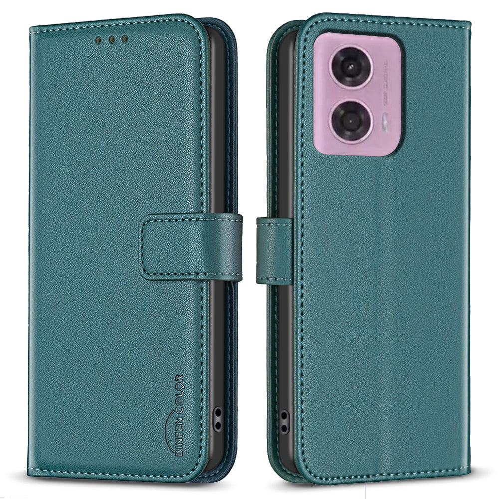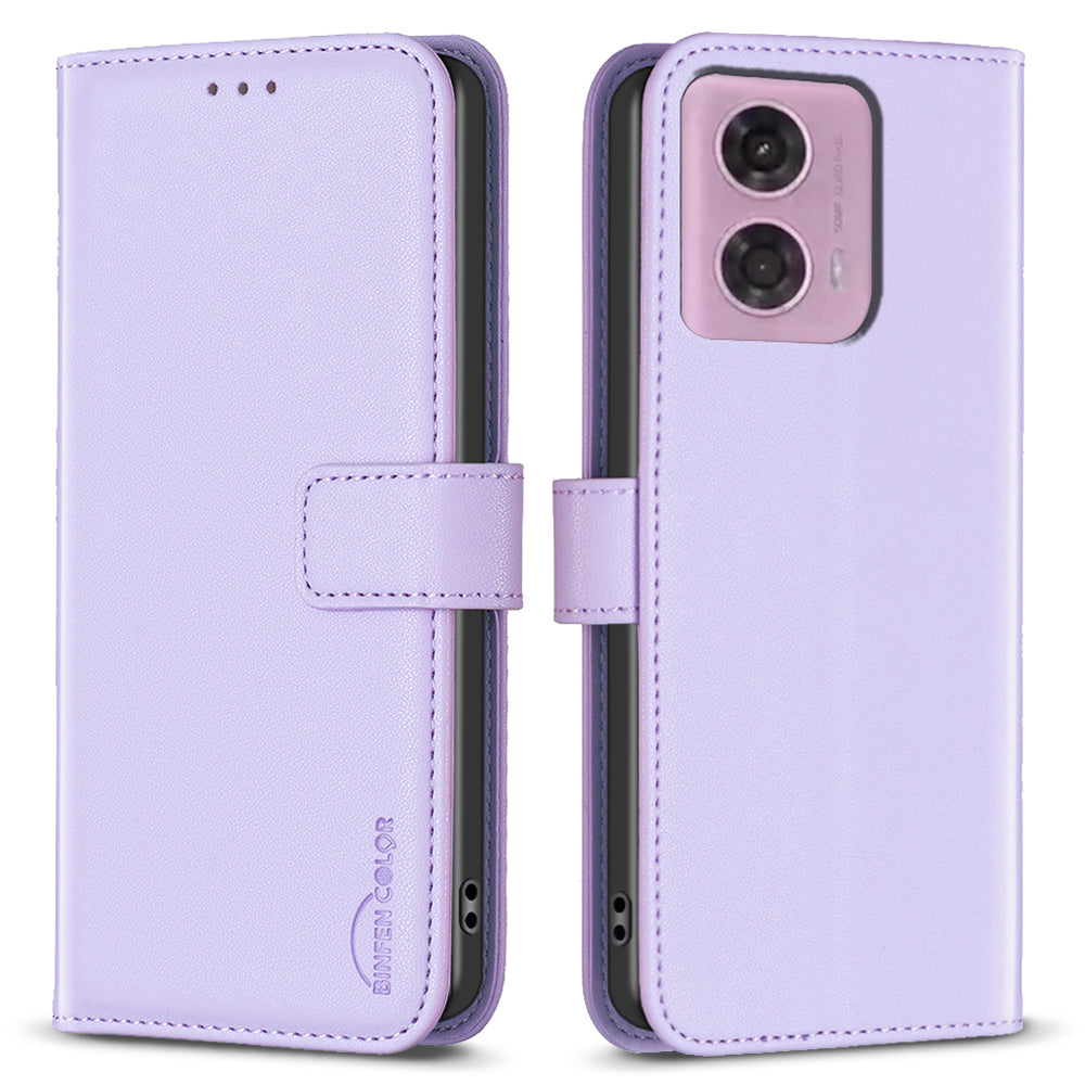BINFEN COLOR BF17 For Motorola Moto G24 4G / G04 4G Leather Case Drop-proof Phone Cover - Black