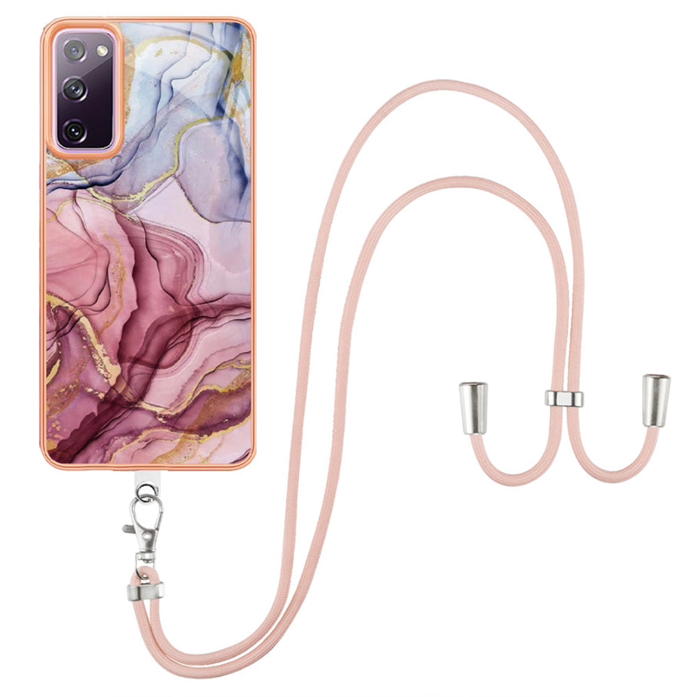 For Samsung Galaxy S20 FE / FE 5G / FE 2022 / S20 Lite IMD Case YB IMD Series-18 Style E Electroplating Marble Pattern 2.0mm TPU Phone Cover with Lanyard