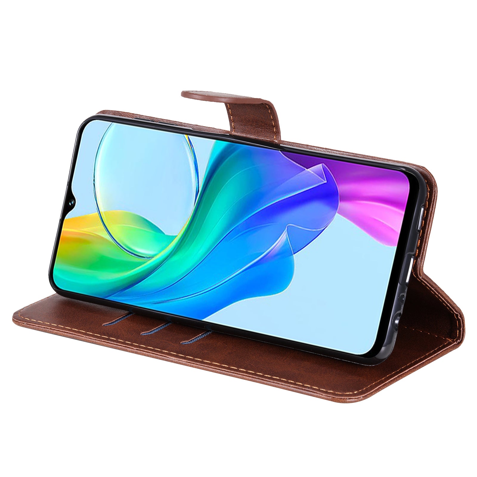 For vivo Y03 Case Zipper Pocket Wallet Calf Texture Leather Phone Cover