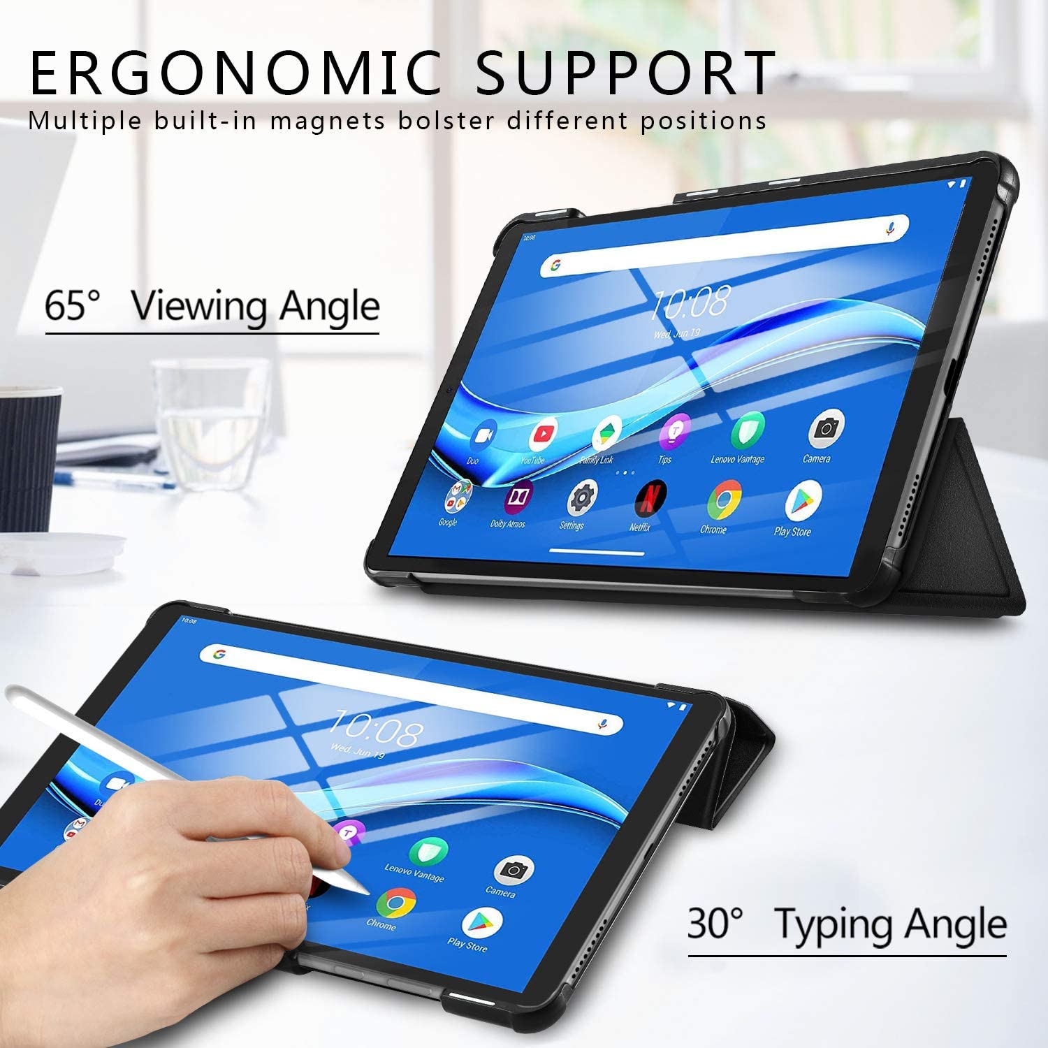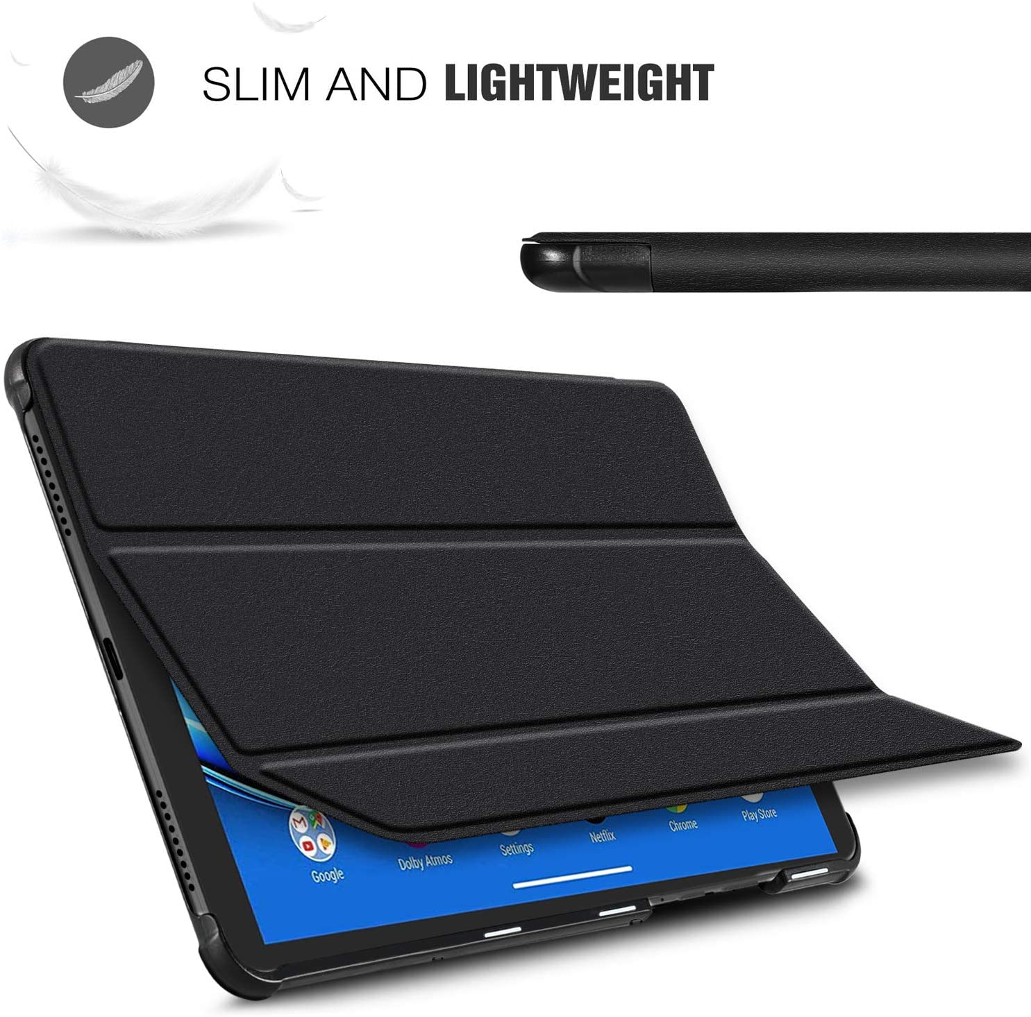 Tri-fold Stand PU Leather Protective Tablet Case Straight Edge Tempered Glass Film for Lenovo Tab M10 Plus