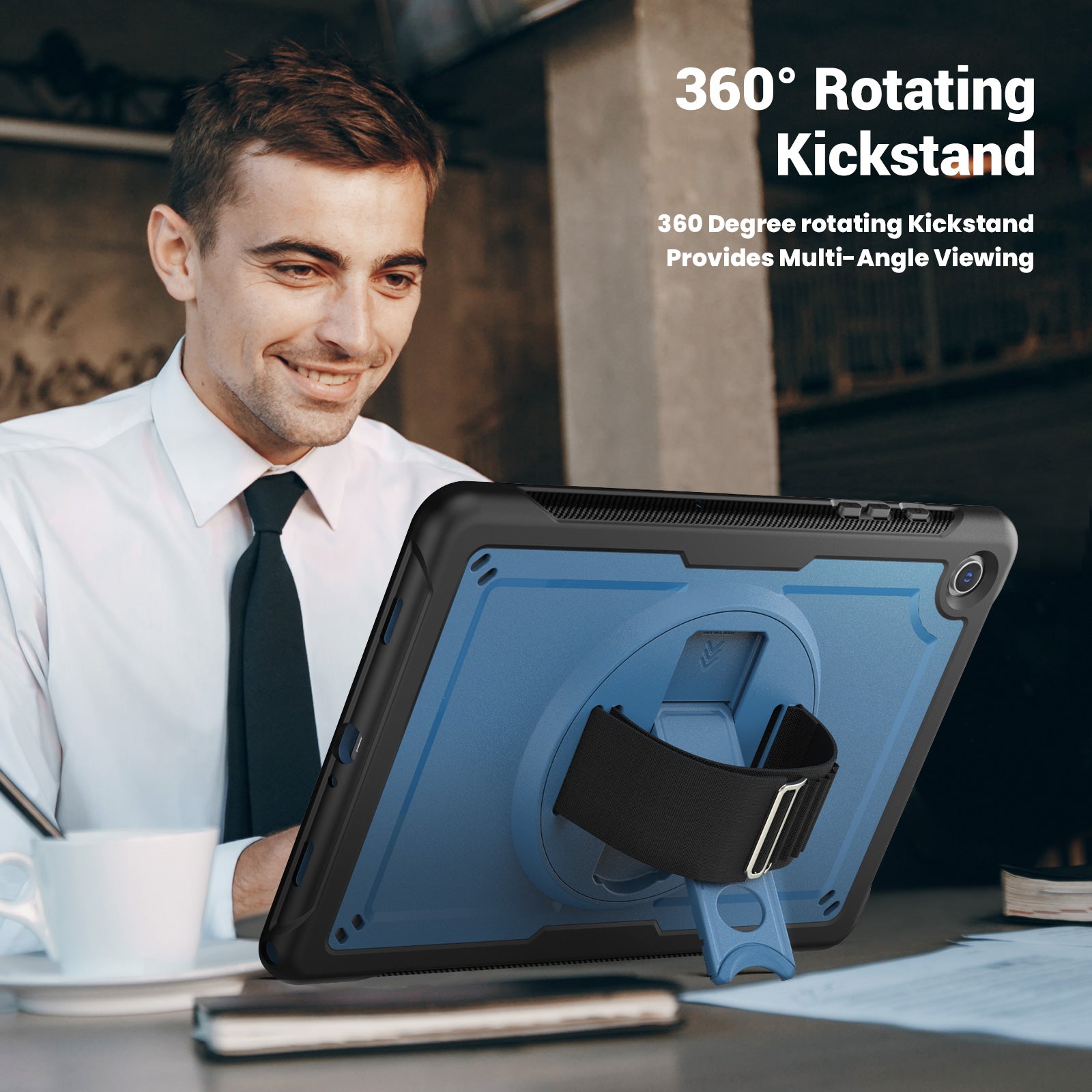 - Spring-Loaded Kicktand: Equipped with a spring-loaded kickstand, the case allows for easy and versatile positioning of the tablet, enabling hands-free viewing and usage in various angles