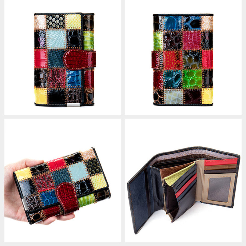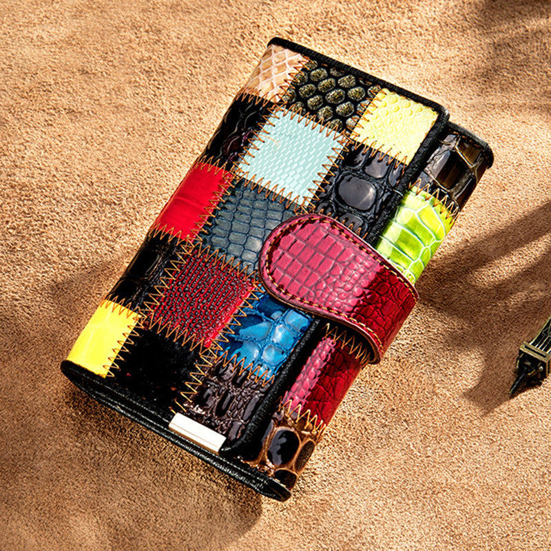 - 4203 Stylish Women Top Layer Cowhide Leather Wallet Clutch Bag Color Splicing Multi Card Slots Purse 4203 Stylish Women Top Layer Cowhide Leather Wallet Clutch Bag Color Splicing Multi Card Slots Purse