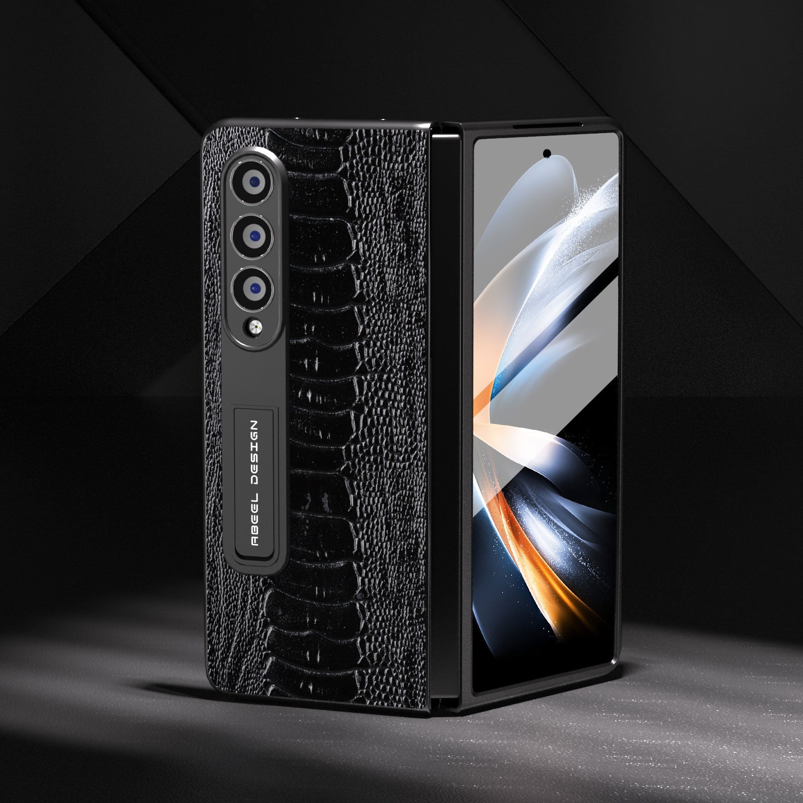 - ABEEL For Samsung Galaxy Z Fold4 5G Crocodile Texture Kickstand Cover Genuine Cow Leather PC Phone Case with Clear Front Screen Film ABEEL For Samsung Galaxy Z Fold4 5G Crocodile Texture Kickstand Cover Genuine Cow Leather PC Phone Case with Clear Front Screen Film
