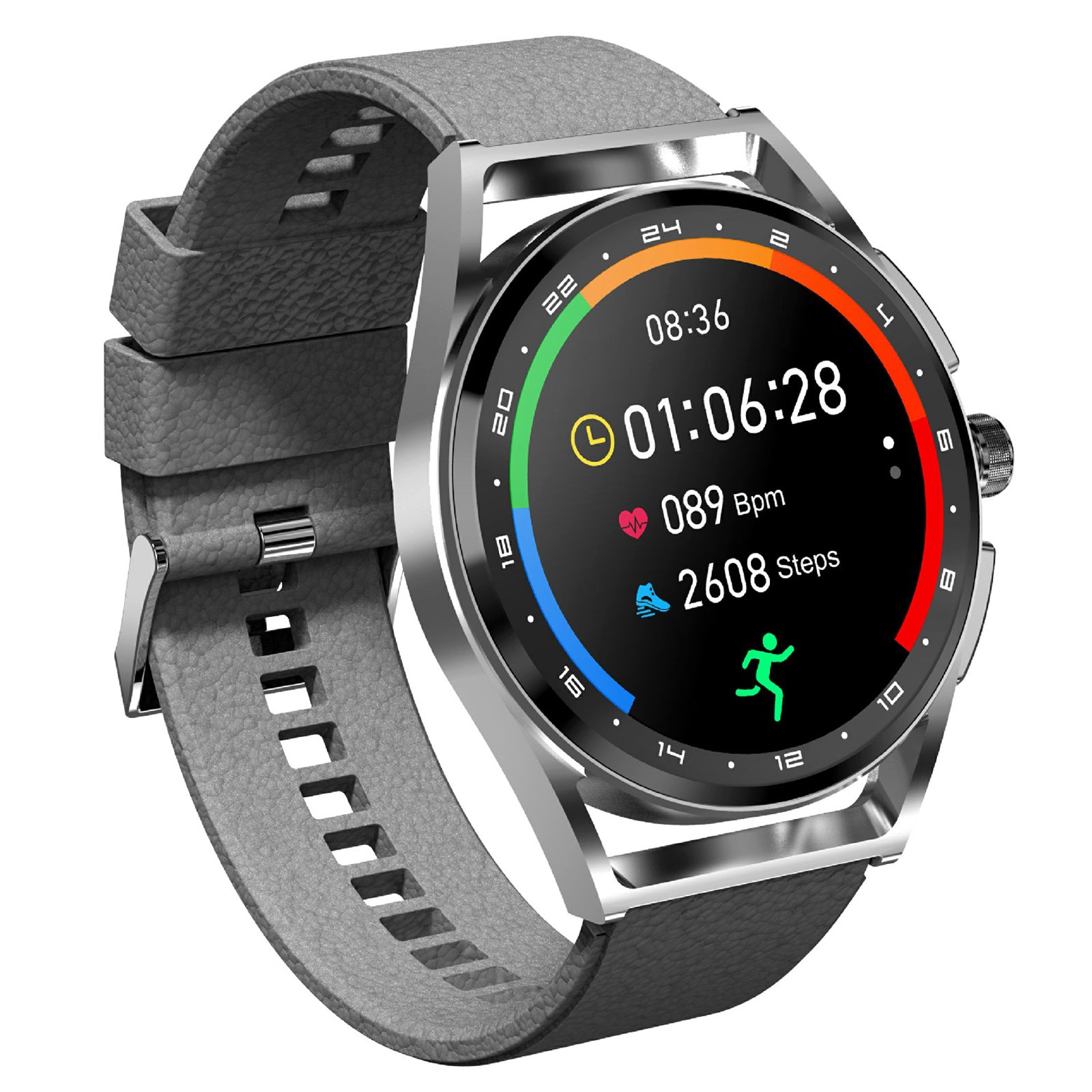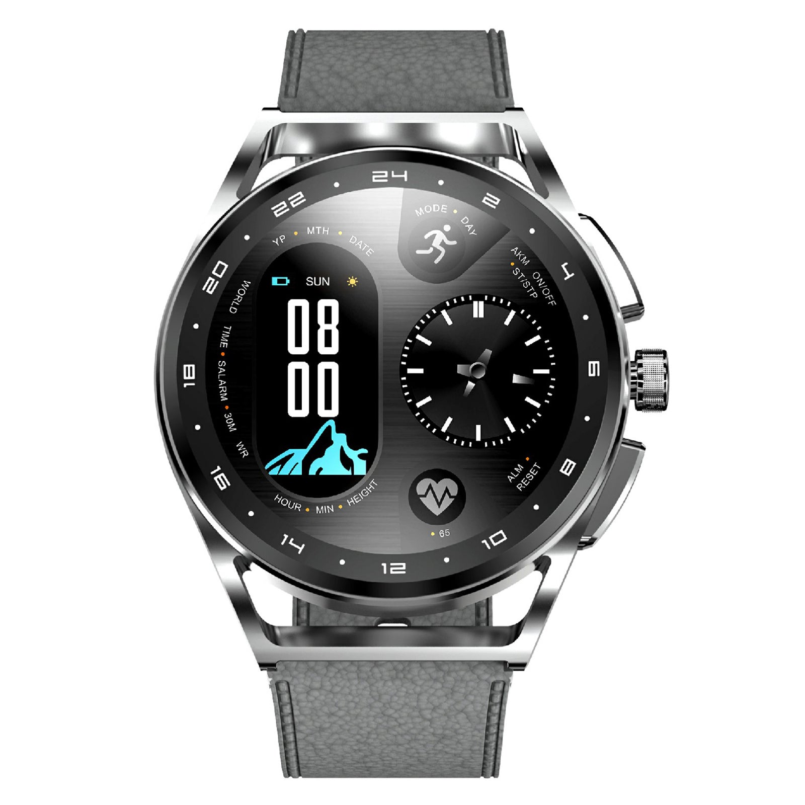 LEMONDA SMART H8S 1.32¡± Full Touch Screen Smart Watch with Heart Rate/Sleep Monitoring Health Watch IP67 Waterproof Sports Bracelet Support Message Reminder - Grey/Leather
