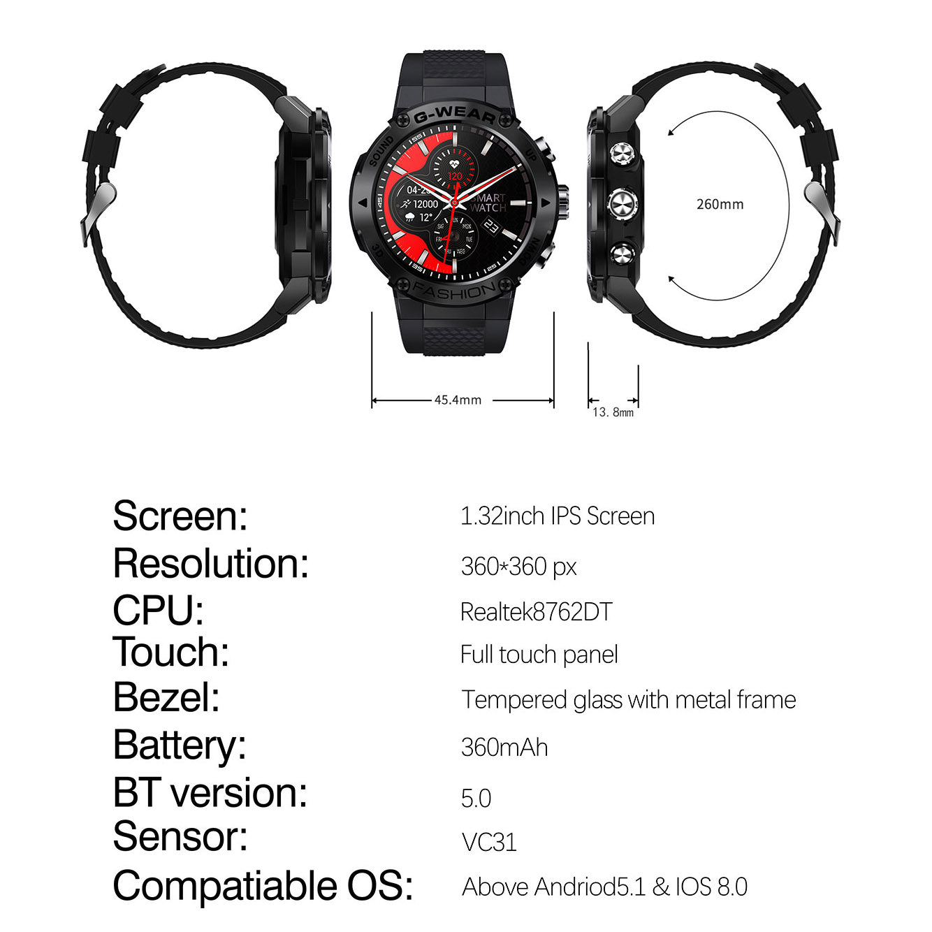 - 1.32-inch 360*360HD IPS full touch screen of the smartwatch, which is a bright screen under sunshine, and come with 3-side buttons for easy operations