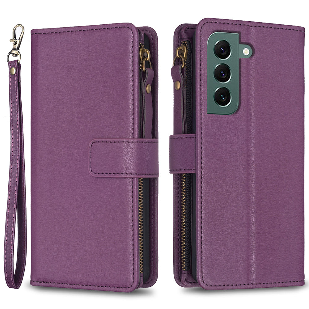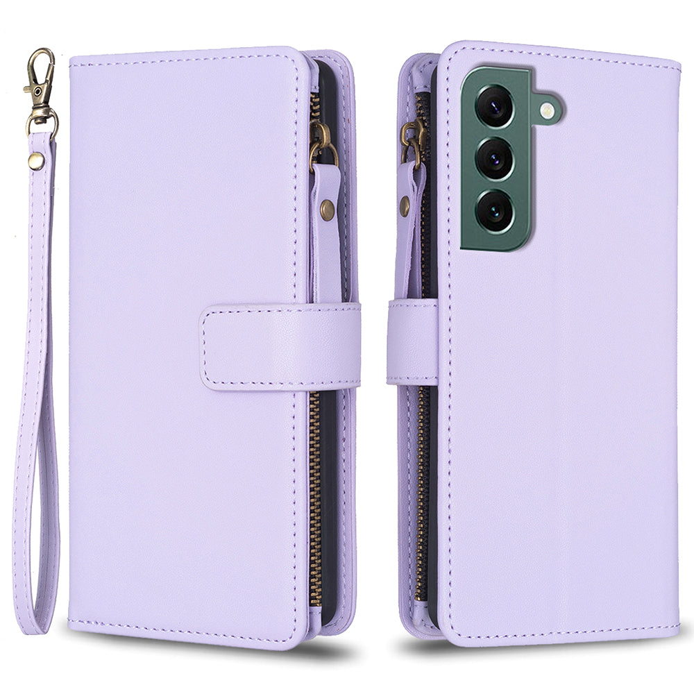 BF Style-19 for Samsung Galaxy S22 5G Anti-Scratch Shell Case PU Leather Wallet Stand Zippered Phone Cover