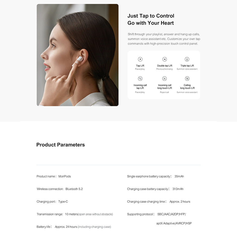 - XIAOMI Haylou MoriPods TWS Headset Wireless Earphone Bluetooth Earbuds with Charging Case XIAOMI Haylou MoriPods TWS Headset Wireless Earphone Bluetooth Earbuds with Charging Case
