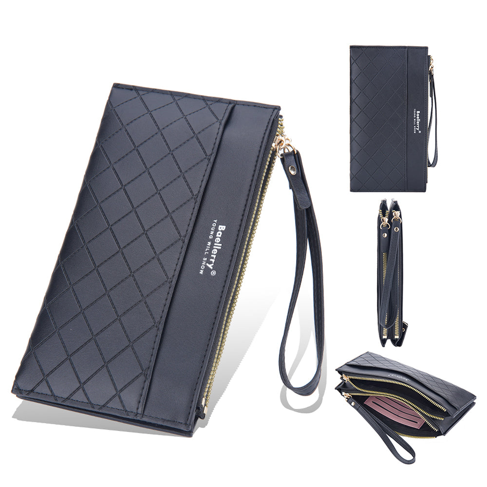 - BAELLERRY N3238 Rhombus Stitching Lines Double Zipper Cellphone Clutch Women Purse PU Leather Long Wallet with Hand Strap BAELLERRY N3238 Rhombus Stitching Lines Double Zipper Cellphone Clutch Women Purse PU Leather Long Wallet with Hand Strap