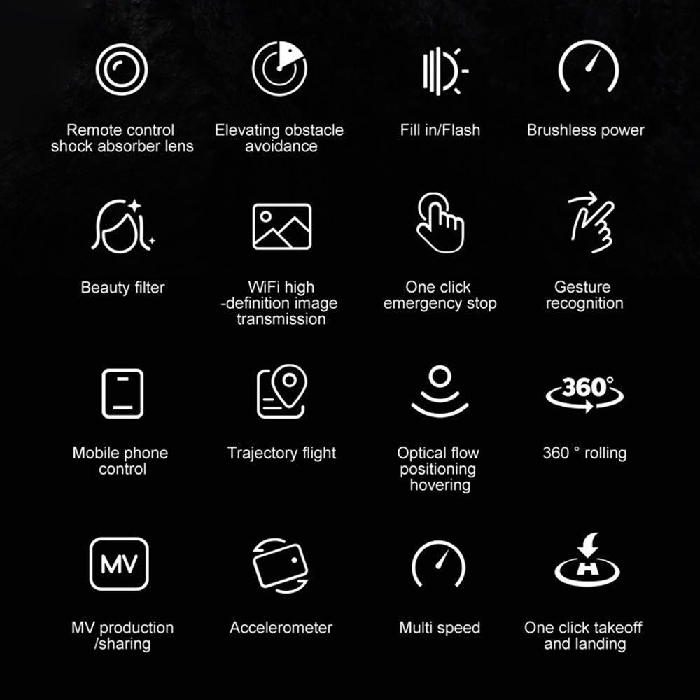 - Gesture photography, optical flow positioning, brushless motor, long battery life, with obstacle avoidance function, can make an emergency stop when encountering obstacles without colliding with them
