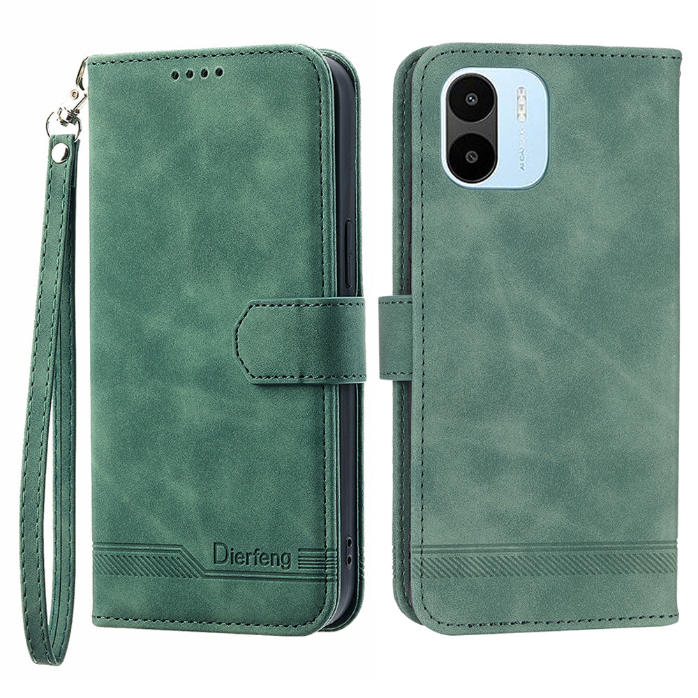 DIERFENG DF-03 Cell Phone Wallet Case for Xiaomi Redmi A1 4G A2 4G PU Leather Stand Phone Cover Lines Imprinted