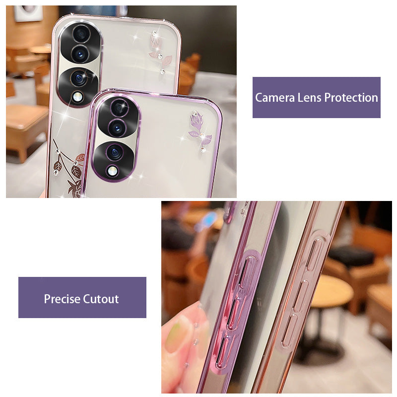 - For Honor 70 5G Lightweight Flower Pattern Protective Phone Cover Rhinestone Decor Soft TPU Electroplating Phone Case For Honor 70 5G Lightweight Flower Pattern Protective Phone Cover Rhinestone Decor Soft TPU Electroplating Phone Case