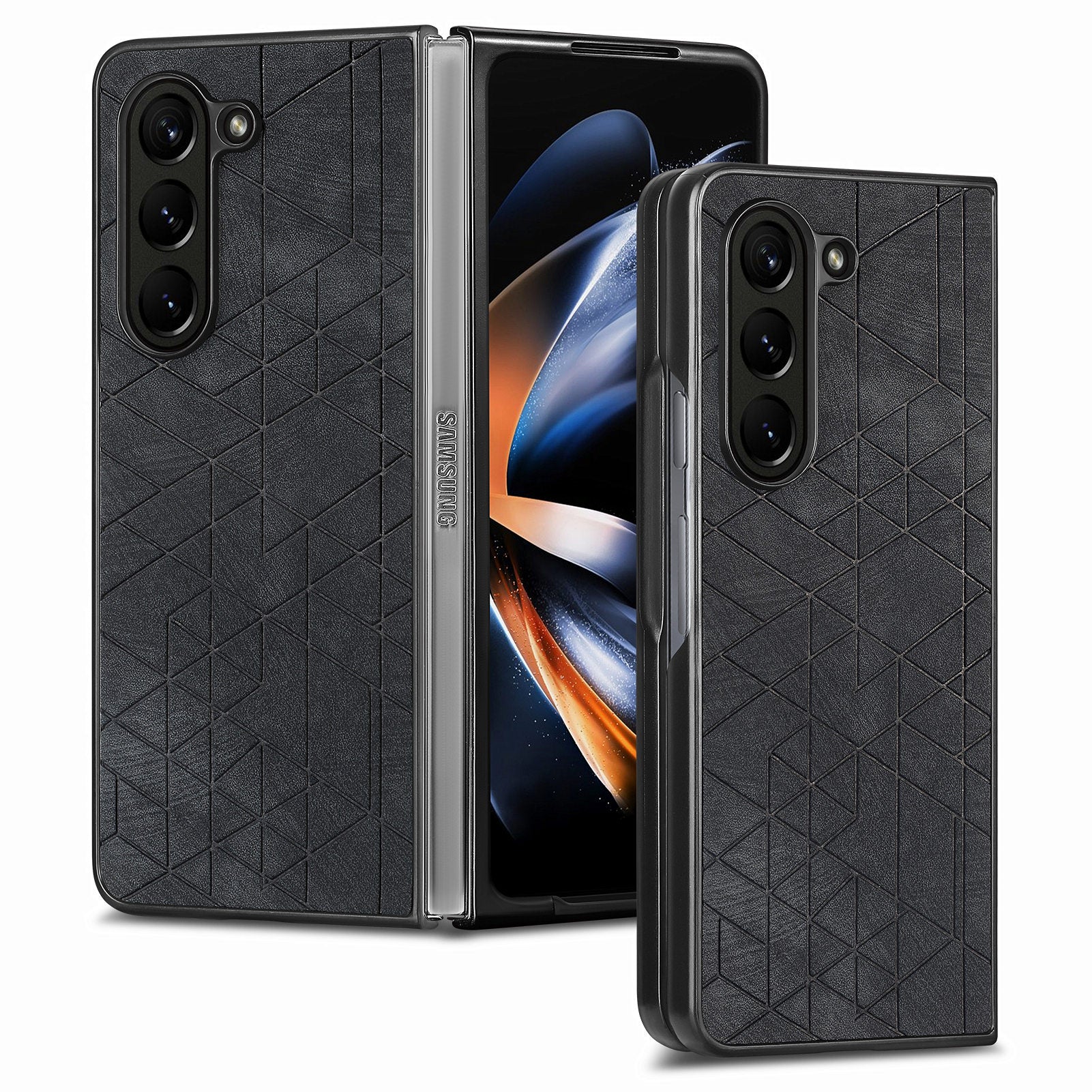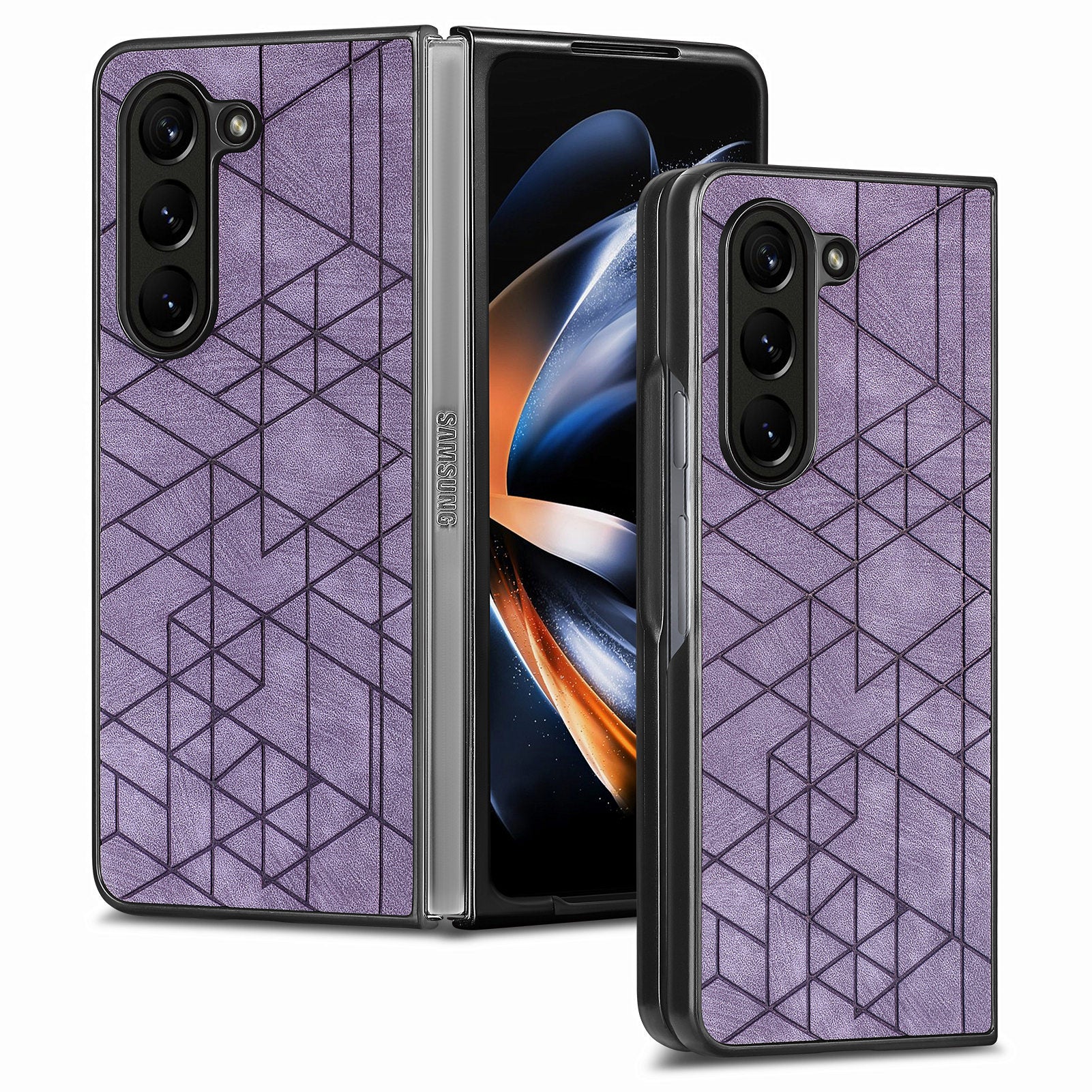 - For Samsung Galaxy Z Fold5 5G PU Leather Coated PC Phone Case Geometry Imprinted Shockproof Cover For Samsung Galaxy Z Fold5 5G PU Leather Coated PC Phone Case Geometry Imprinted Shockproof Cover