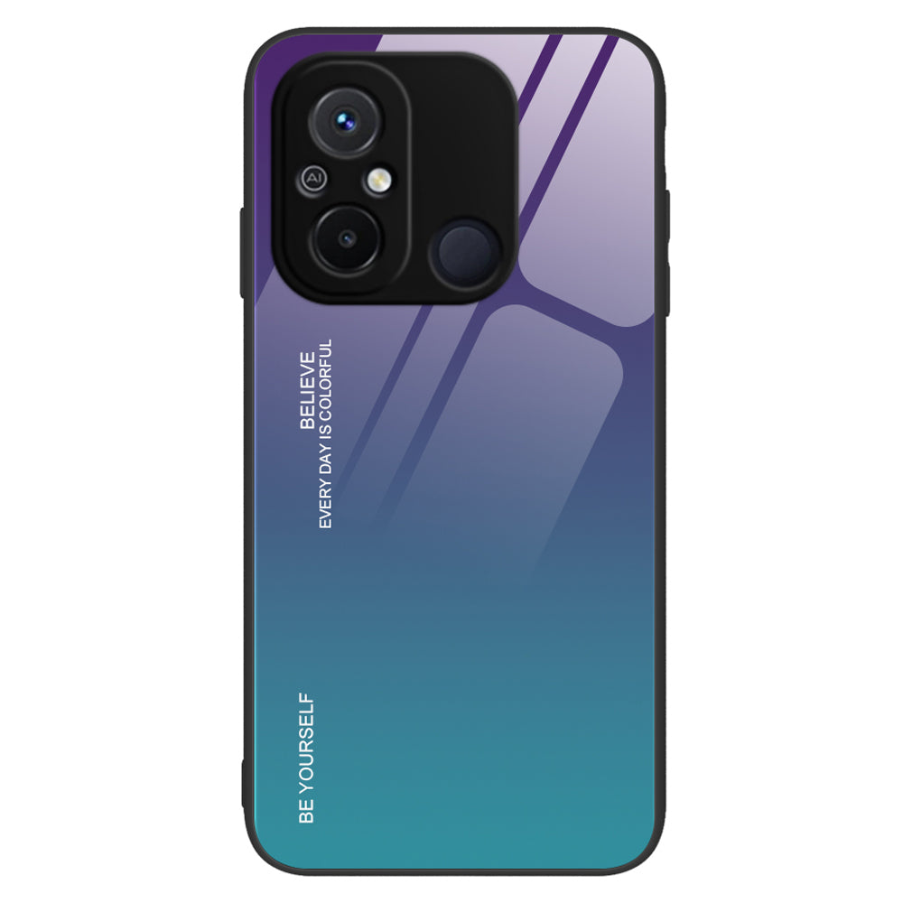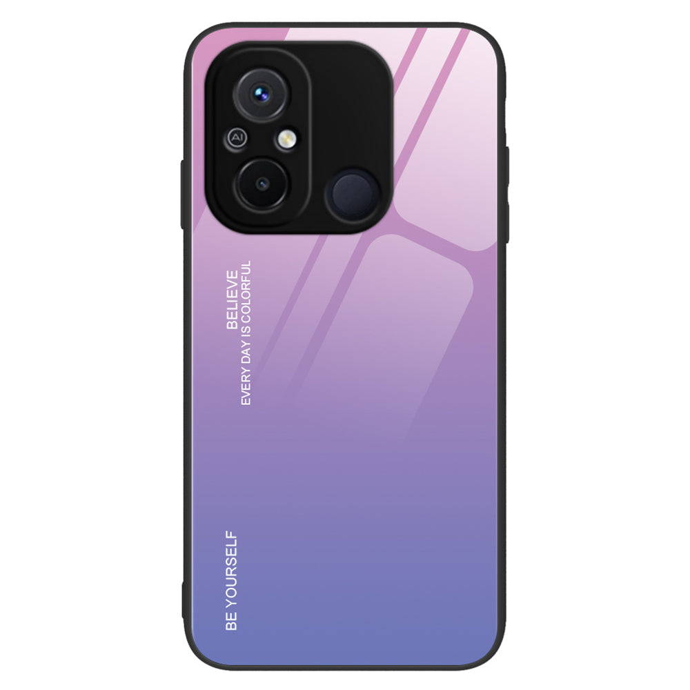 Gradient Color Phone Case for Xiaomi Redmi 12C 4G Tempered Glass PC Back TPU Frame Anti-Scratch Cover