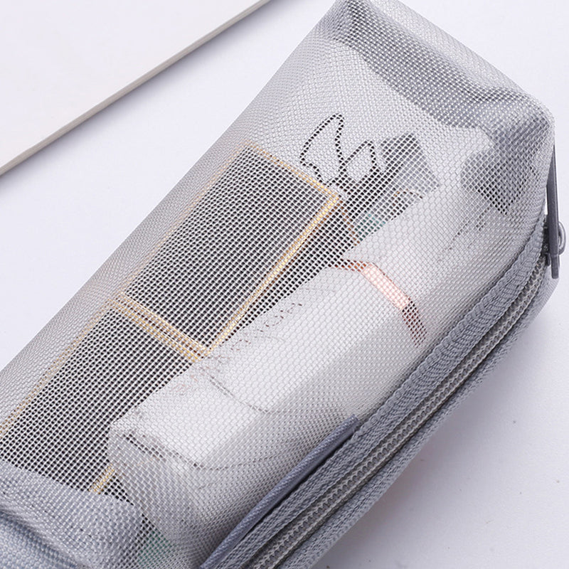 - The mesh cosmetic pouch is suitable in size, light in weight,making it perfect for travel or everyday use. It easily fits into purses, backpacks, or luggage
