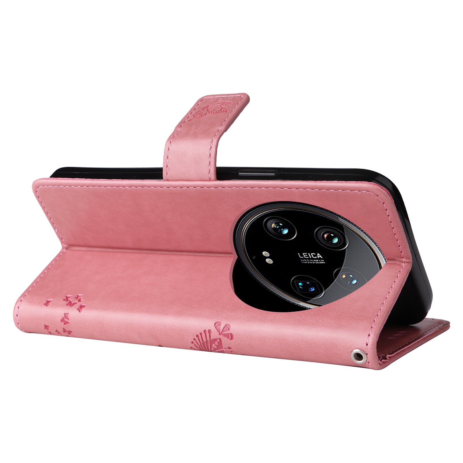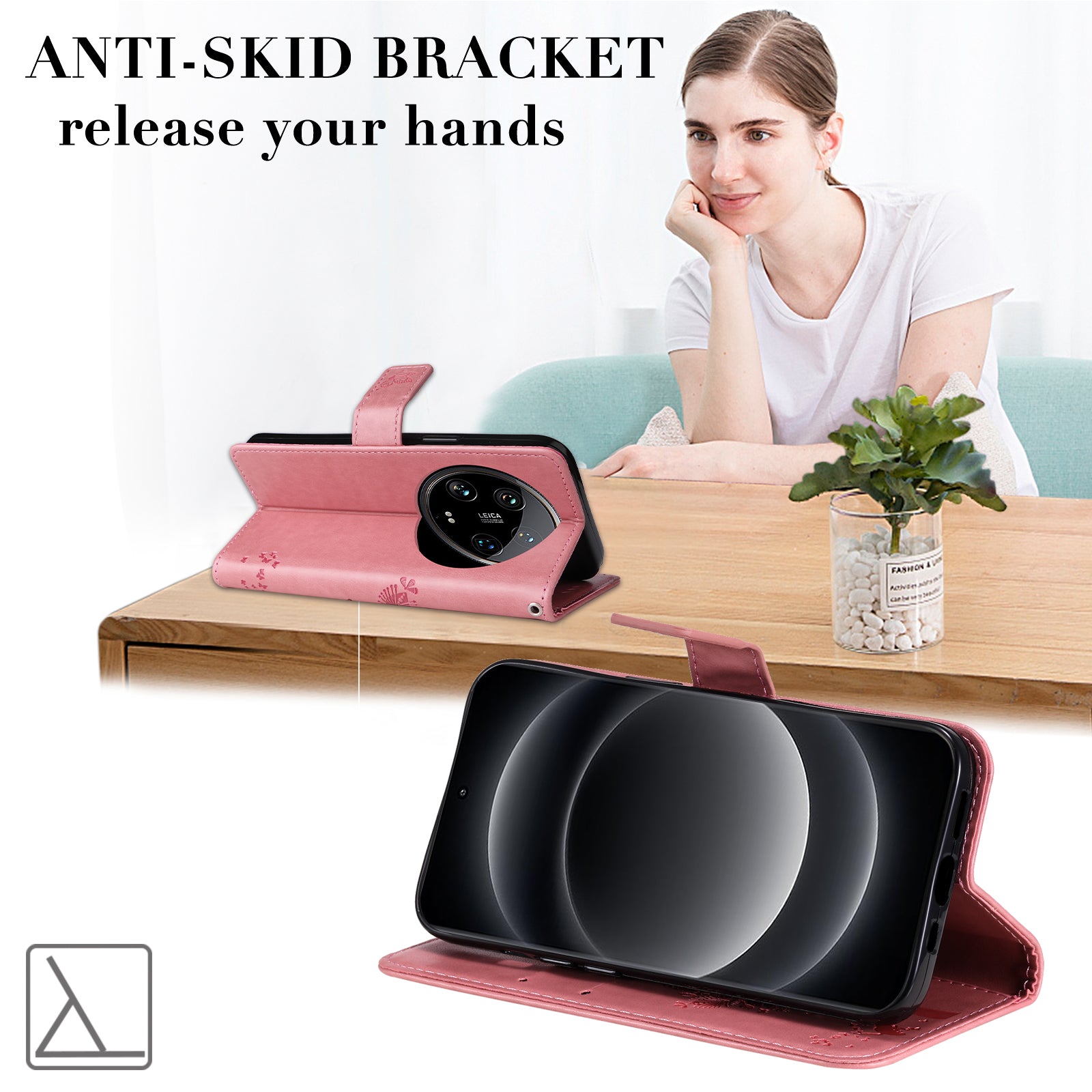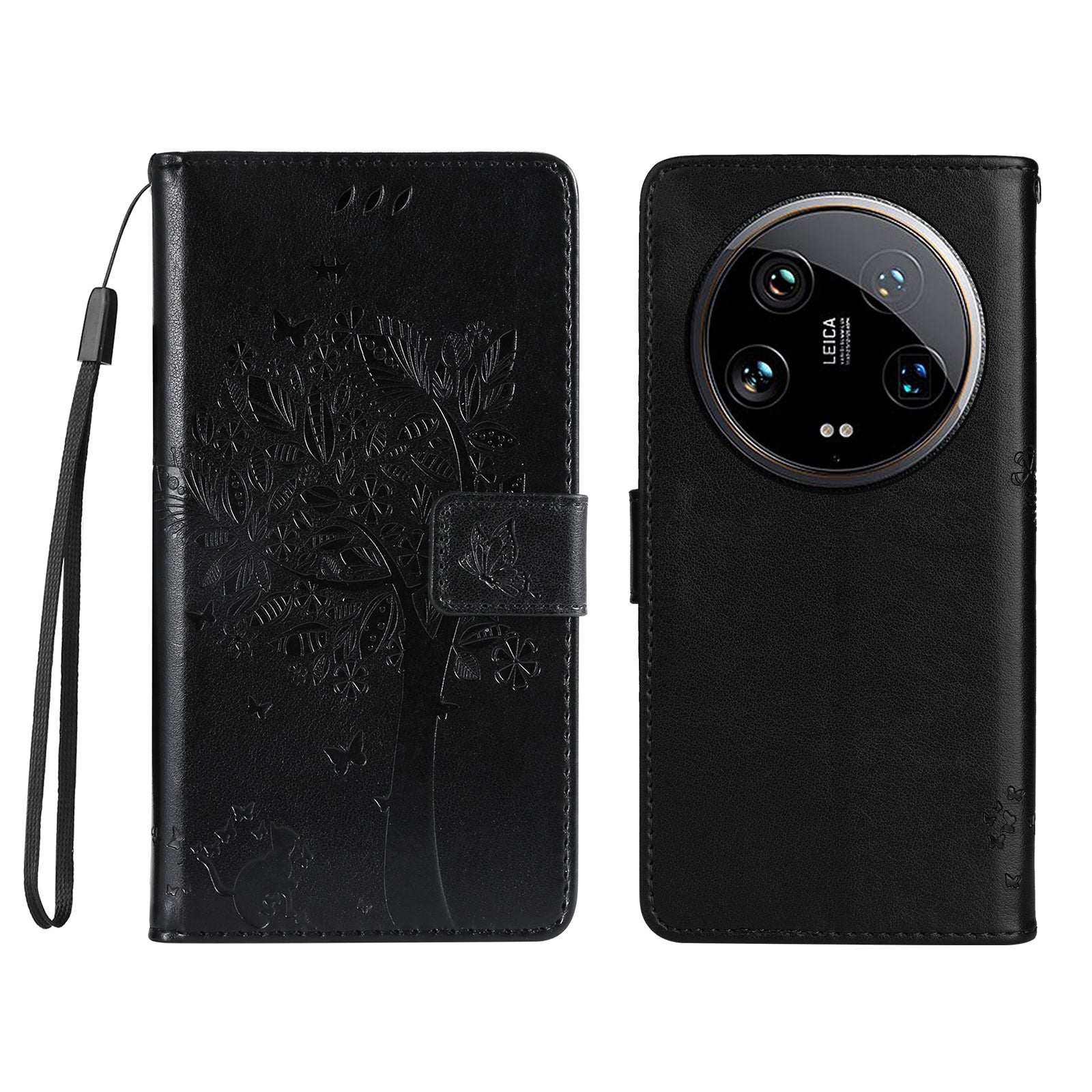KT Imprinting Flower Series-3 For Xiaomi 14 Ultra Wallet Phone Case Cat Tree Pattern Leather Cover