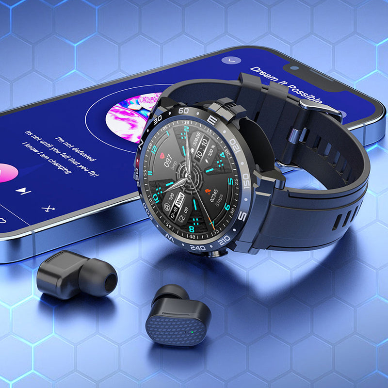 - Anytime, Anywhere Enjoy a Listening Feast: Smart watch and TWS perfect combination. Music headphones can be taken out and used with mobile phones Put it in your ear and enjoy it instantly