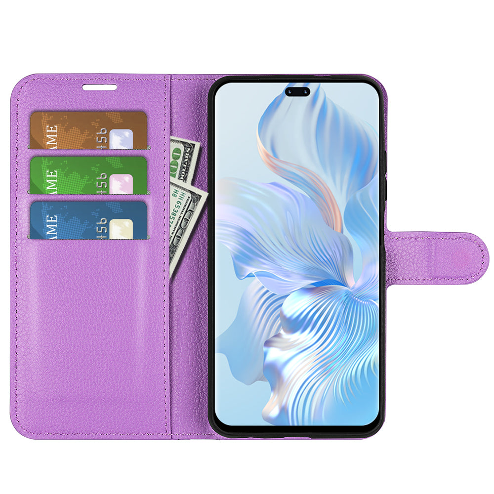 Phone Stand Wallet Cover for Honor 80 Pro 5G Fall Protection Litchi Texture PU Leather Phone Flip Case