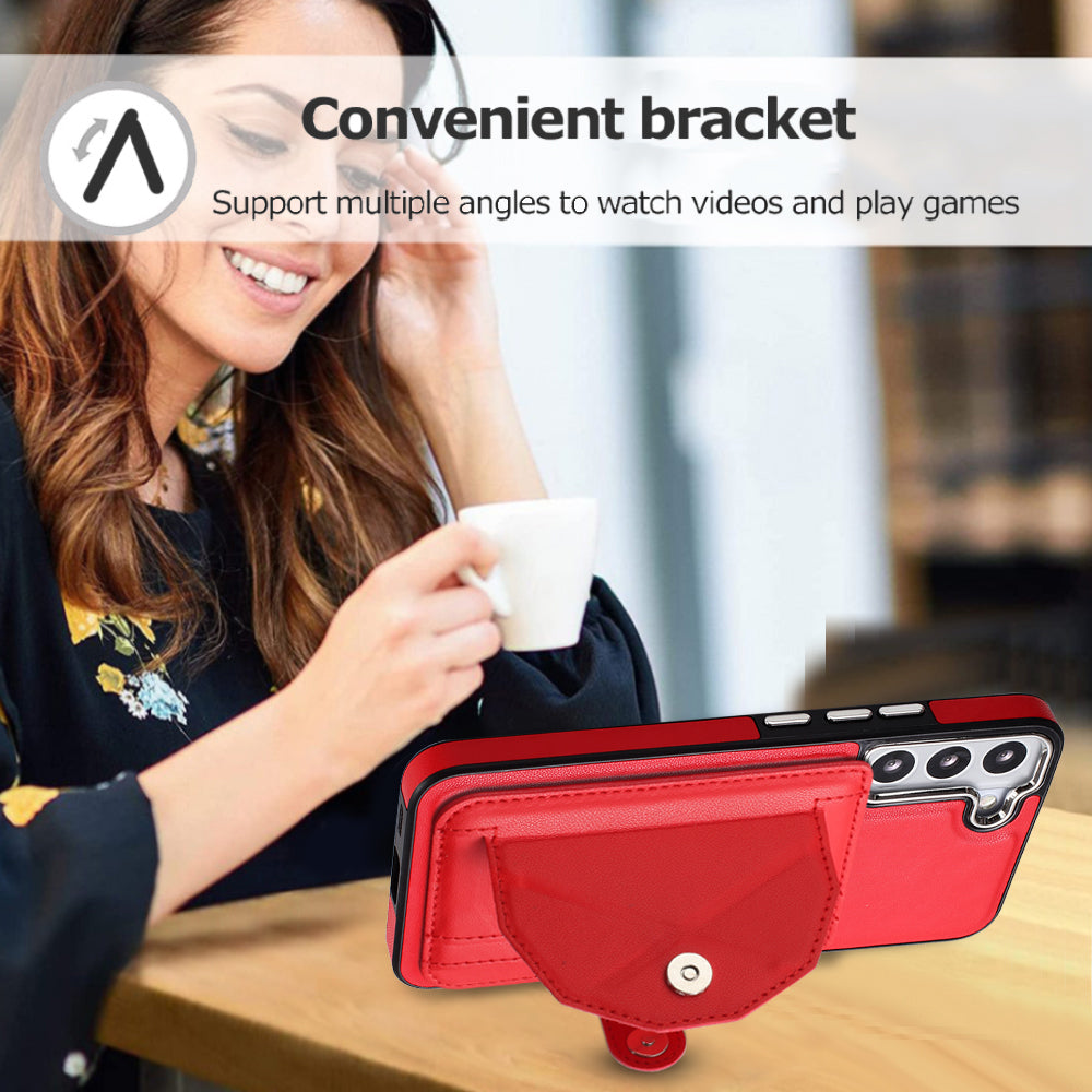 - The card holder can act as a kickstand to support the phone for hands-free watching