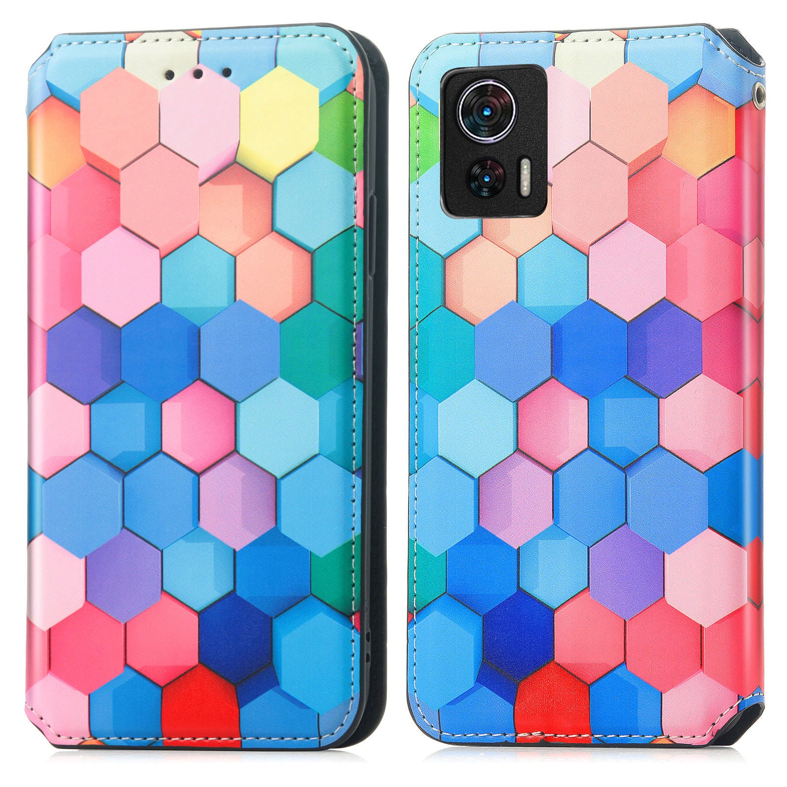 CASENEO 001 Series for Motorola Edge 30 Neo 5G Edge 30 Lite RFID Blocking Phone Cover Pattern Printing PU Leather Stand Magnetic Absorption Wallet Case