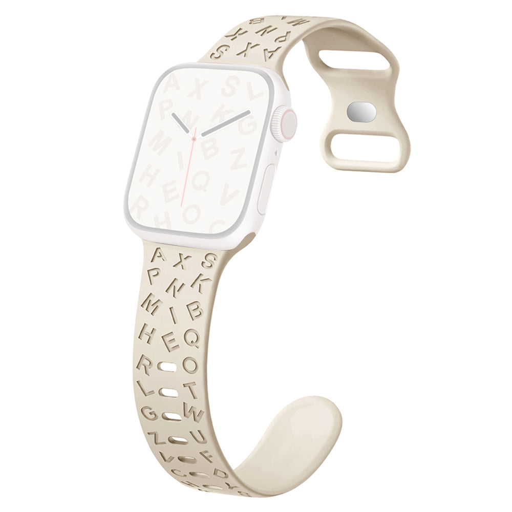 - The watch band features unique alphabet detailing, adds a playful and personalized touch