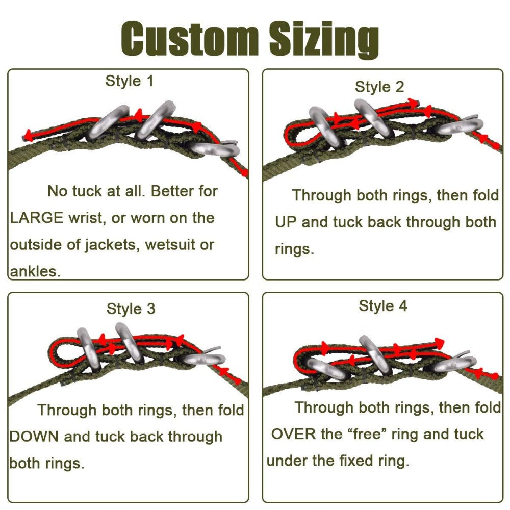 - Three stainless steel loops, one for size adjustment, and the other two for decoration