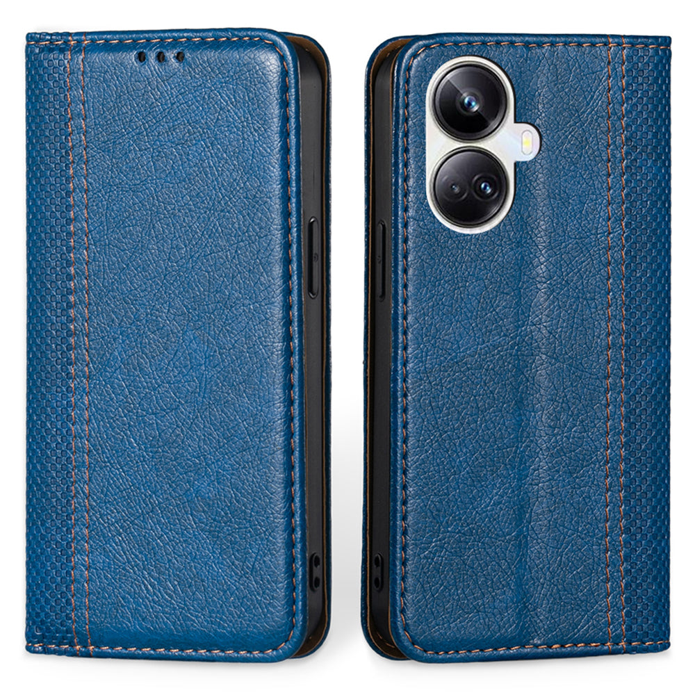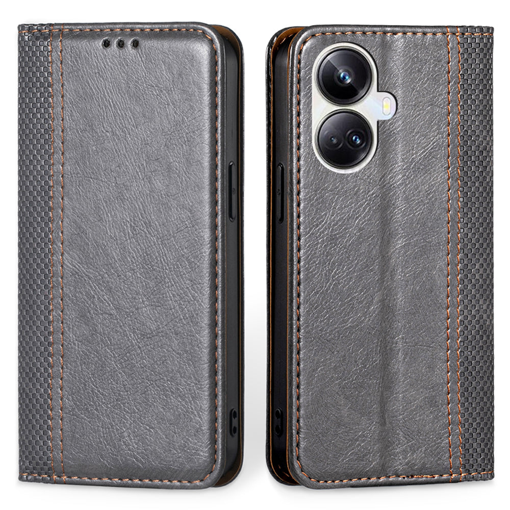 For Realme 10 Pro 5G Plaid Pattern PU Leather Card Holder Stand Case Magnetic Auto Closing Protective Phone Cover