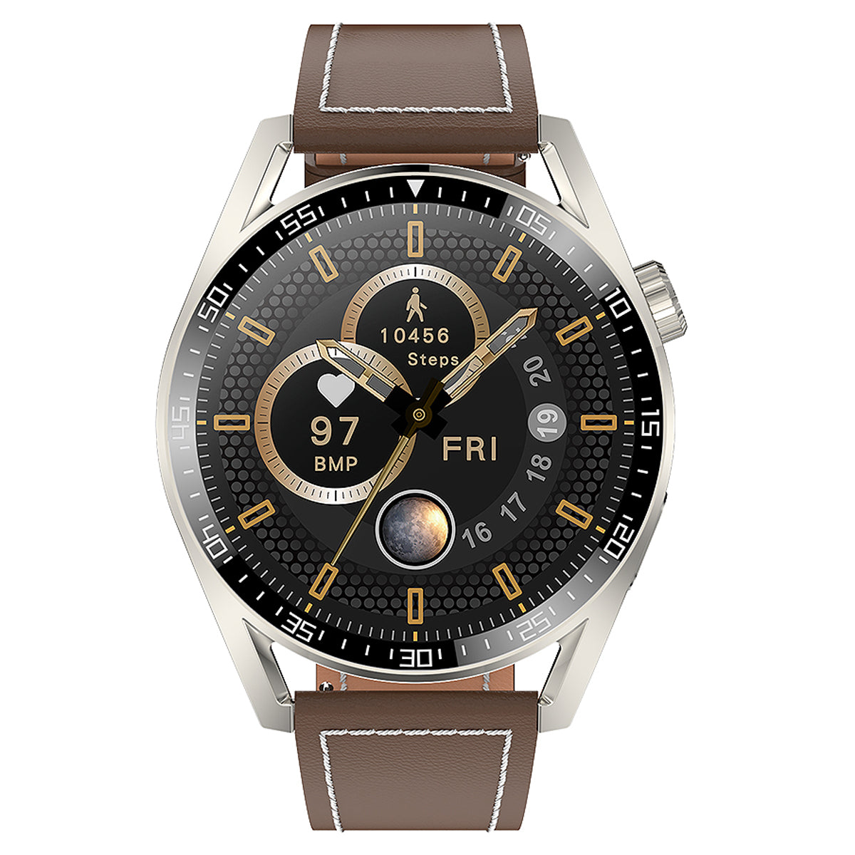 HDT3 Dual SIM Card Bluetooth Supported Smart Watch Water-Drinking Reminder Steps Ranking Multi-Motion Mode with Leather Watchband - Brown
