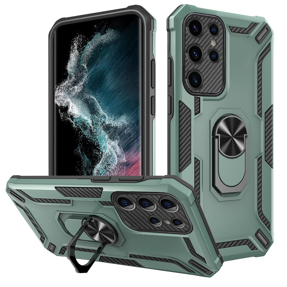 For Samsung Galaxy S23 Ultra PC TPU Phone Case Ring Kickstand Magnetic Car Mount Phone Cover