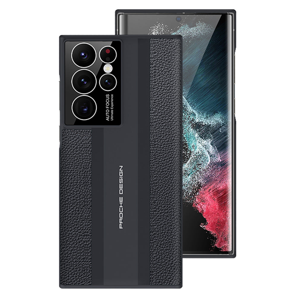 Anti-Drop Skin-Touch Phone Case for Samsung Galaxy S23 Ultra Protective Hard PC Case Genuine Leather Coated Phone Cover