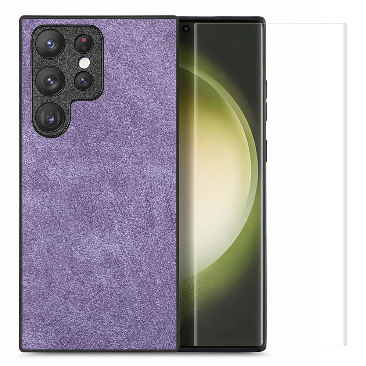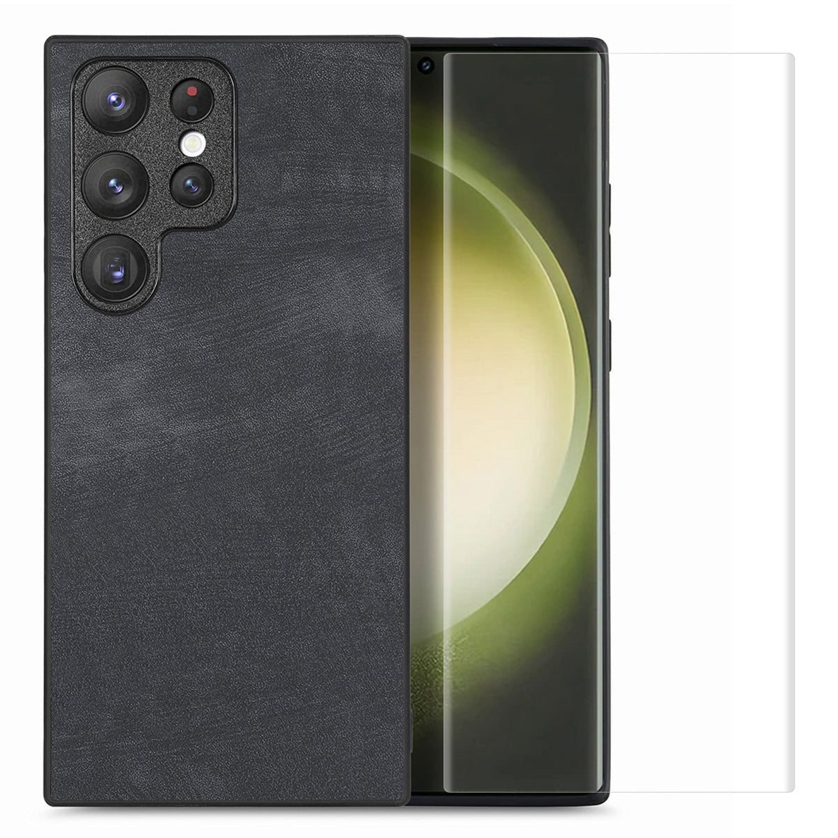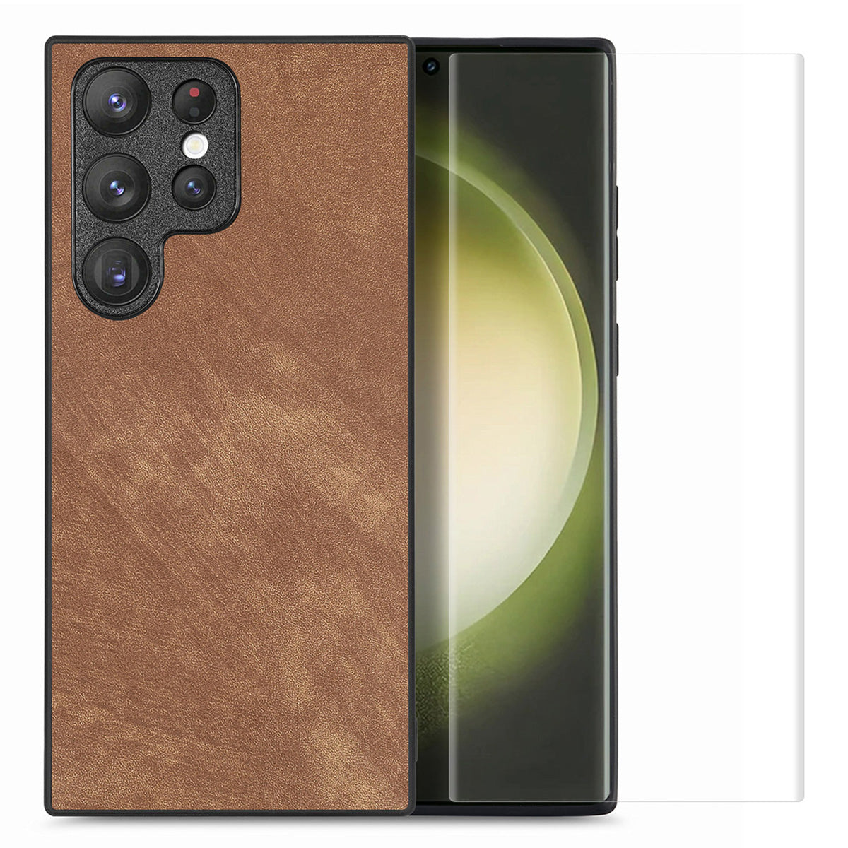 - ENKAY HAT PRINCE For Samsung Galaxy S23 Ultra Retro Leather Coated PC Phone Case with 3D Curved PET HD Screen Film ENKAY HAT PRINCE For Samsung Galaxy S23 Ultra Retro Leather Coated PC Phone Case with 3D Curved PET HD Screen Film