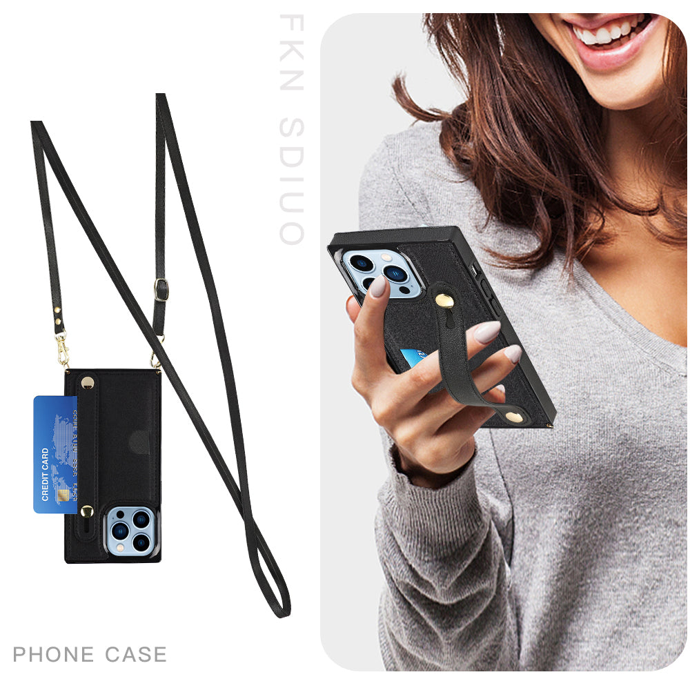 - For iPhone 14 Pro Phone Cover Anti-drop PU Leather+TPU Case with Card Slot and Strap Kickstand - Black For iPhone 14 Pro Phone Cover Anti-drop PU Leather+TPU Case with Card Slot and Strap Kickstand - Black