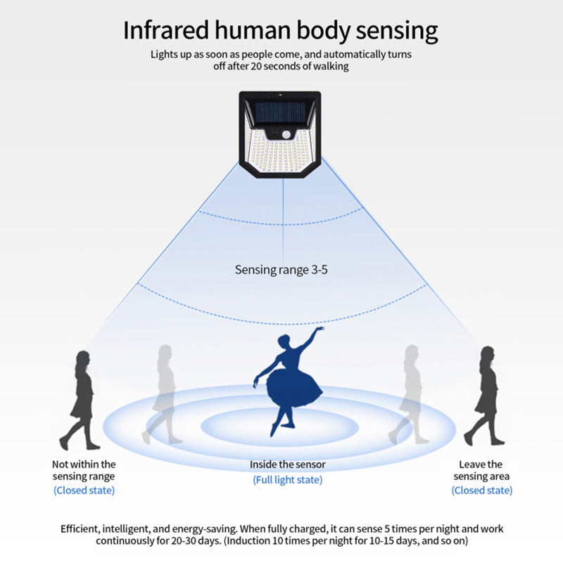 - Infrared human body sensor, the light will turn on when someone comes and will automatically turn off after 20 seconds when someone leaves.