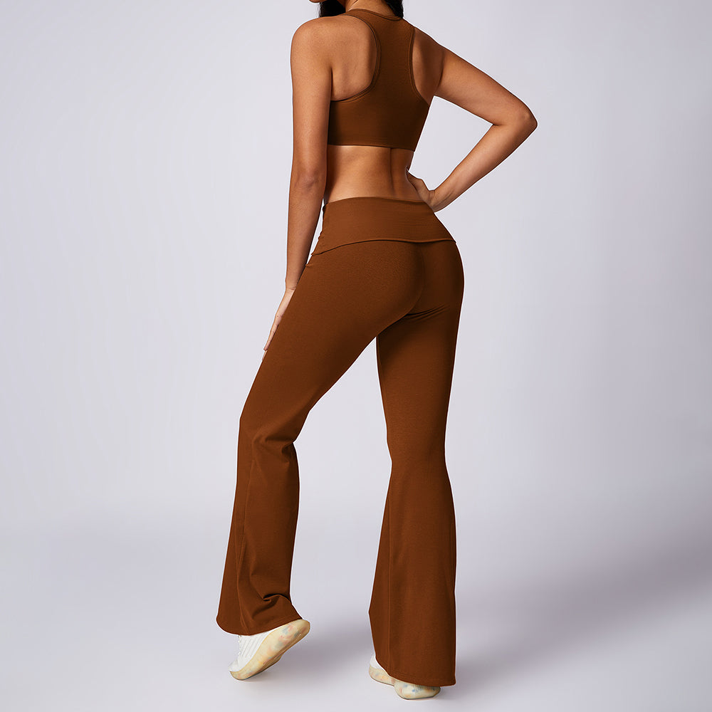 8713 Bootcut Flare Workout Leggings Yoga Long Pants Sports Fitness Bra Set