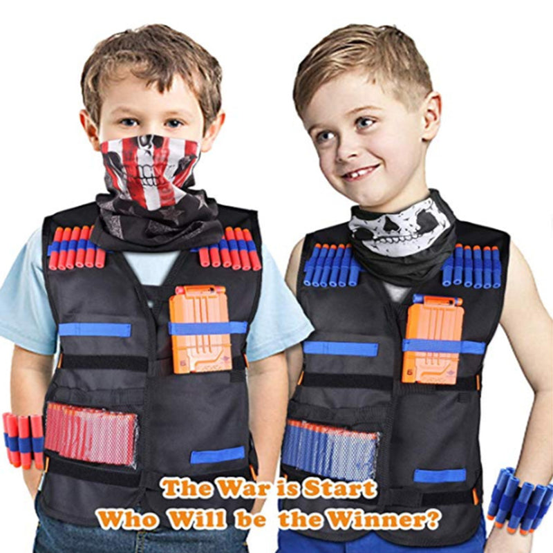 - BX-009 Kids Tactical Vest Kit for Nerf Blaster Game with Refill Darts Reload Clips Face Mask Wrist Bands and Protective Glasses Tactical Vest Toys for Boys Girls BX-009 Kids Tactical Vest Kit for Nerf Blaster Game with Refill Darts Reload Clips Face Mask Wrist Bands and Protective Glasses Tactical Vest Toys for Boys Girls