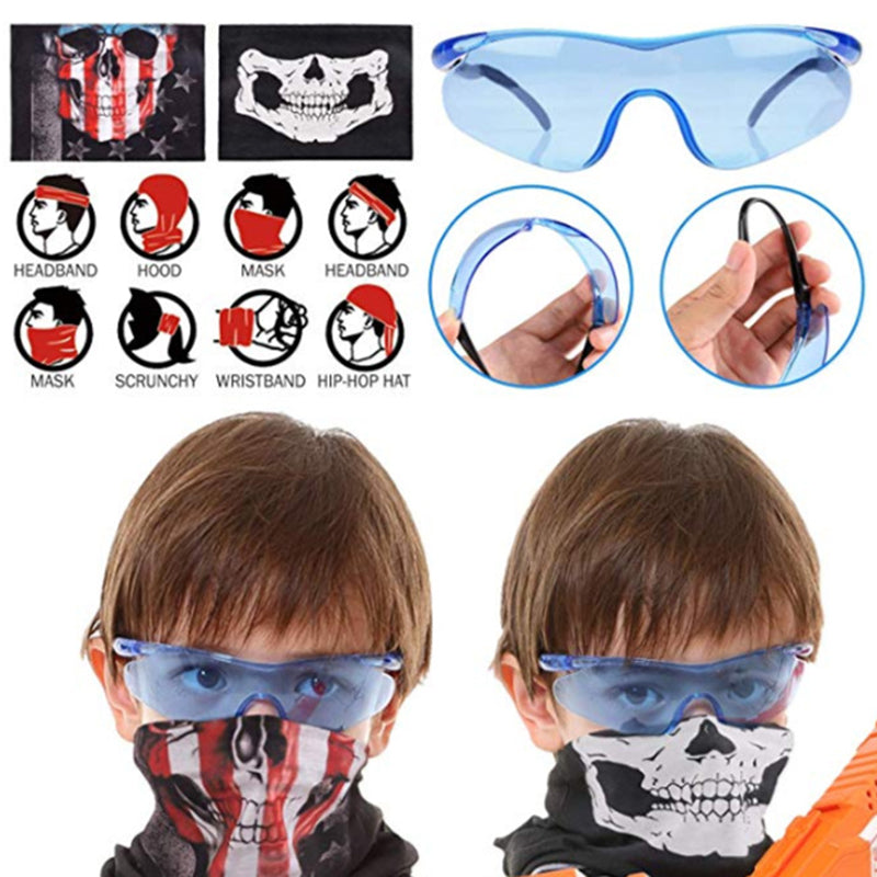 - Refill darts are made of high-quality plastic. All durable tactical sets are non-toxic material; Flexible safety goggles protect your face, and also offer an awesome frightening visual impact to competitors, providing more fun in the battle game for boys and girls