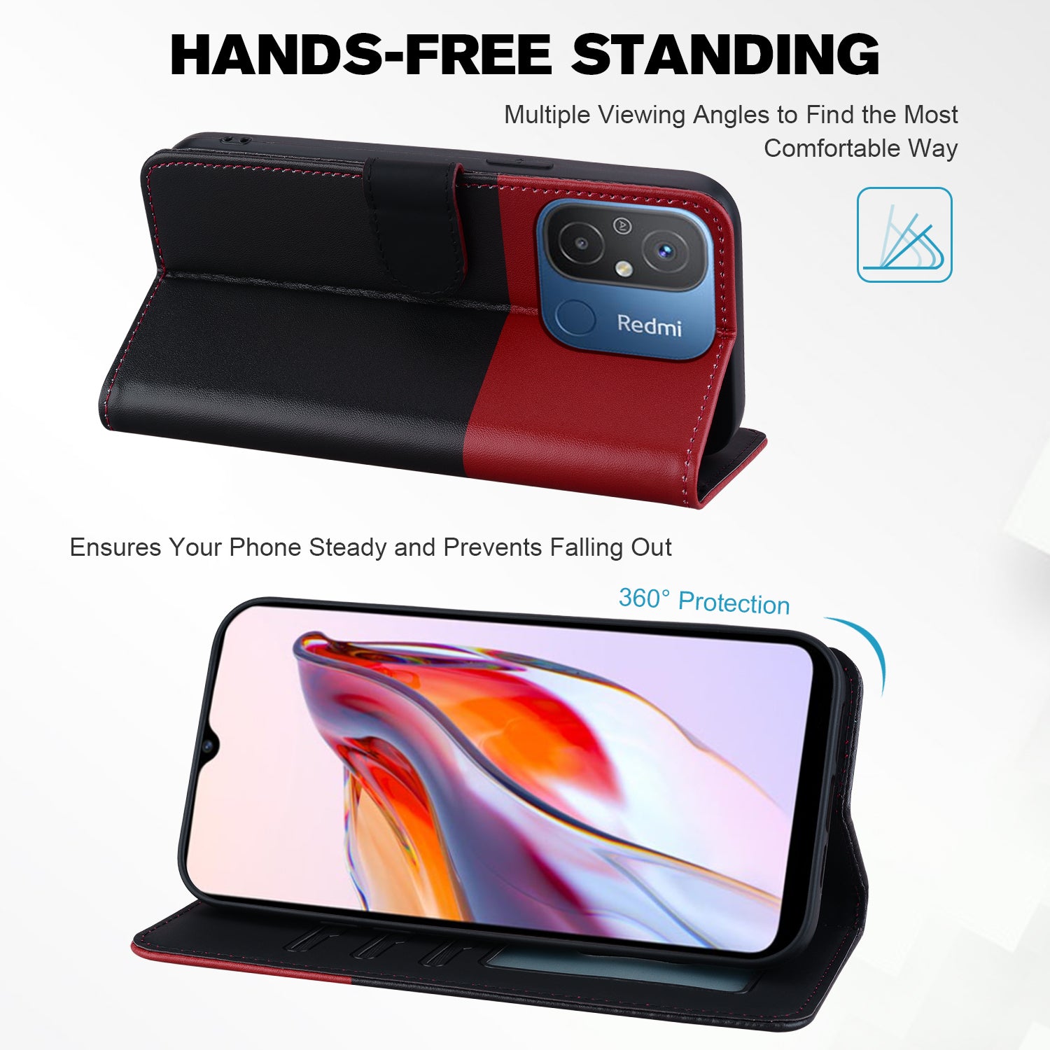 Cartoon Pet Series for Xiaomi Redmi 12C 4G Leather Case Splicing Phone Wallet Cover - Black