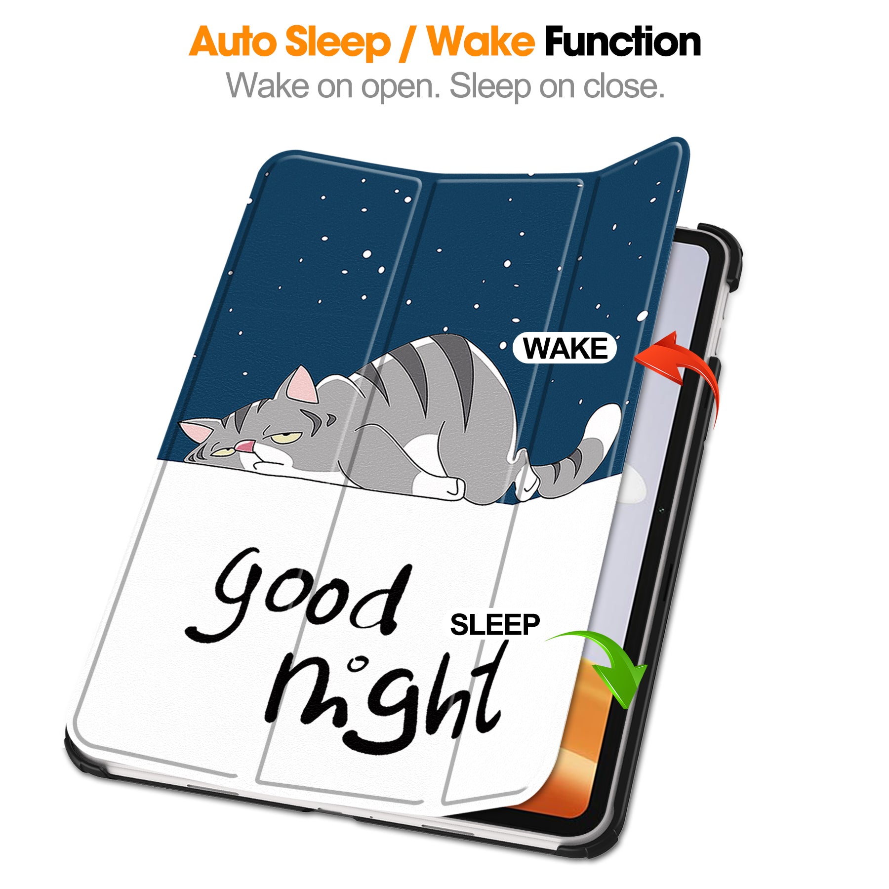This tablet case adopts high-quality PU leather + PC with fine details, making it feel soft and delicate to the touch. The tri-fold cover with dual angles support offers a sturdy and versatile stand for viewing and typing.