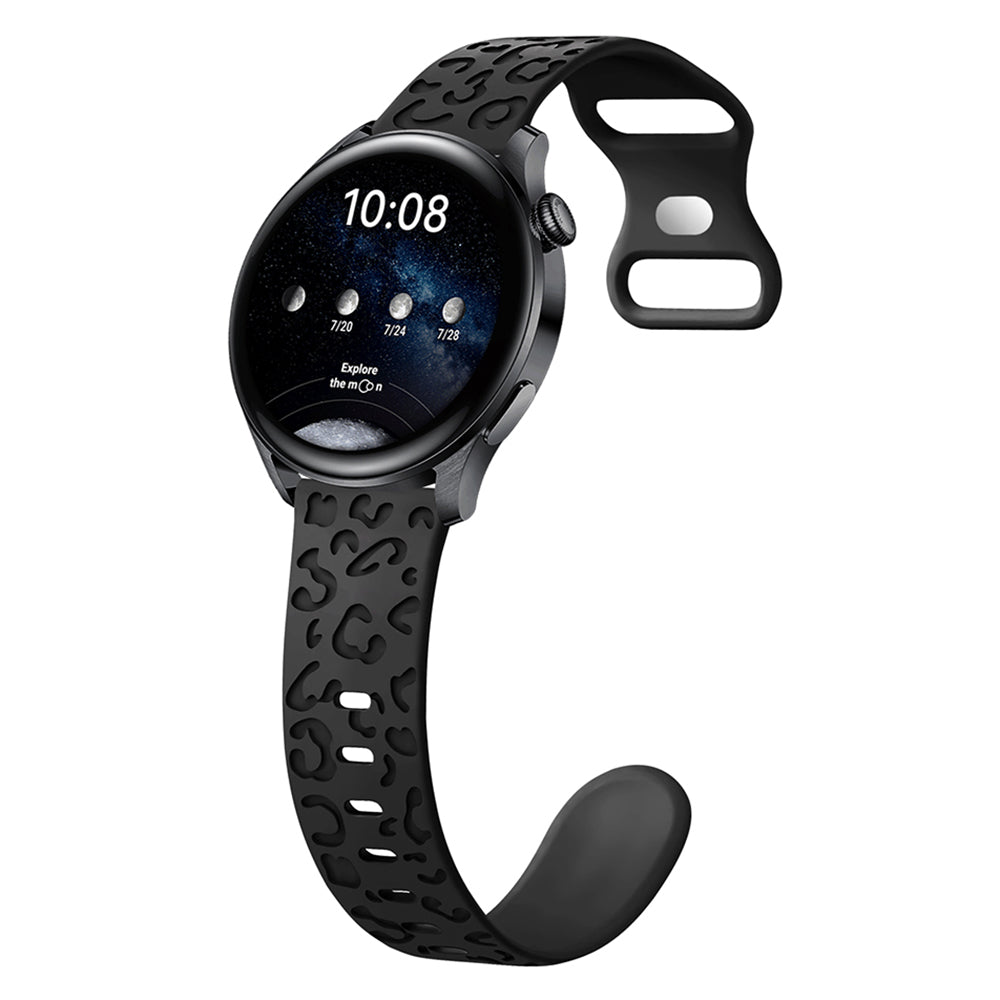 For Samsung Galaxy Watch6 Classic 47mm / 43mm / Garmin Venu Sq 2 20mm Silicone Watch Band Leopard Printed - Black
