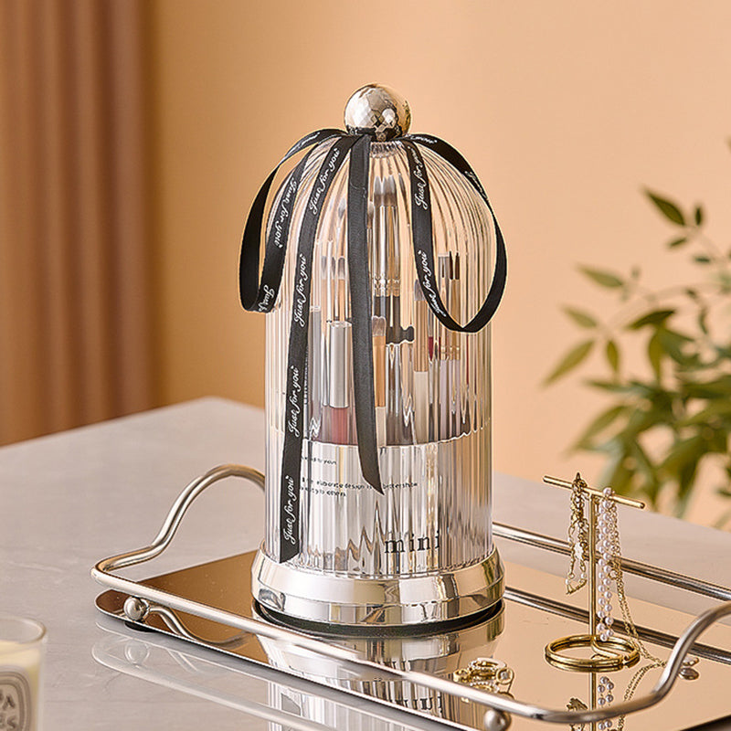Makeup Brush Storage Bucket Rotatable Dressing Table Cosmetics Storage Rack with Lid - Beige