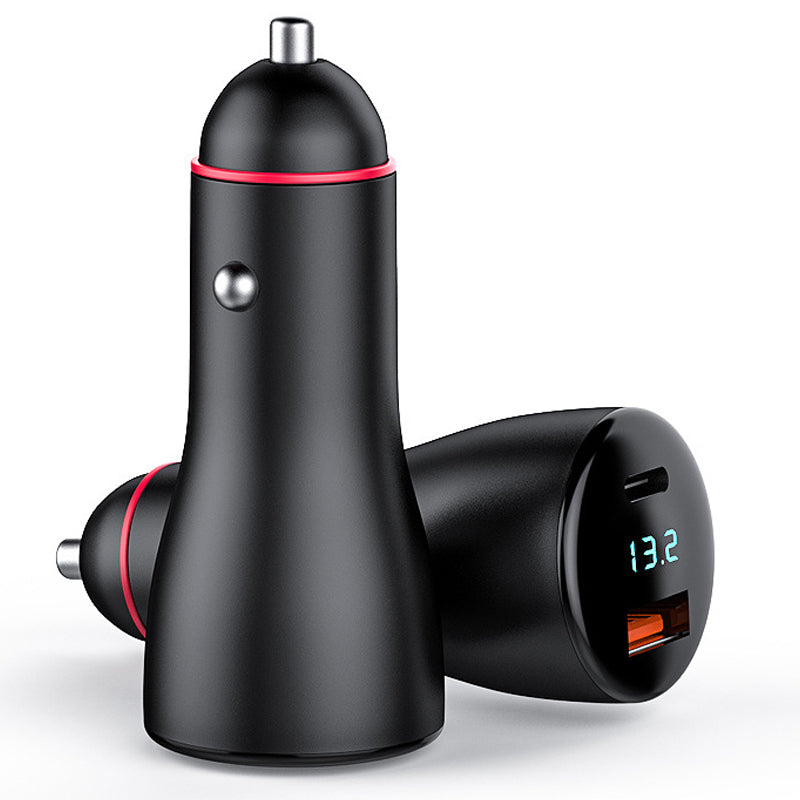 P5C Type-C+USB Dual Port Digital Display PD 65W Fast Charger for 12V-24V Cars