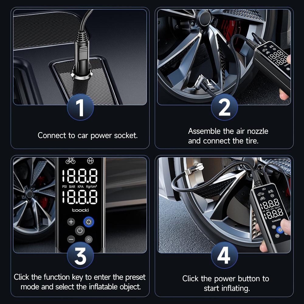 - TOOCKI A5 Car Air Compressor Tire Inflator for Tire Inflation Car Tire Pump with LED Light for Car Tires TOOCKI A5 Car Air Compressor Tire Inflator for Tire Inflation Car Tire Pump with LED Light for Car Tires